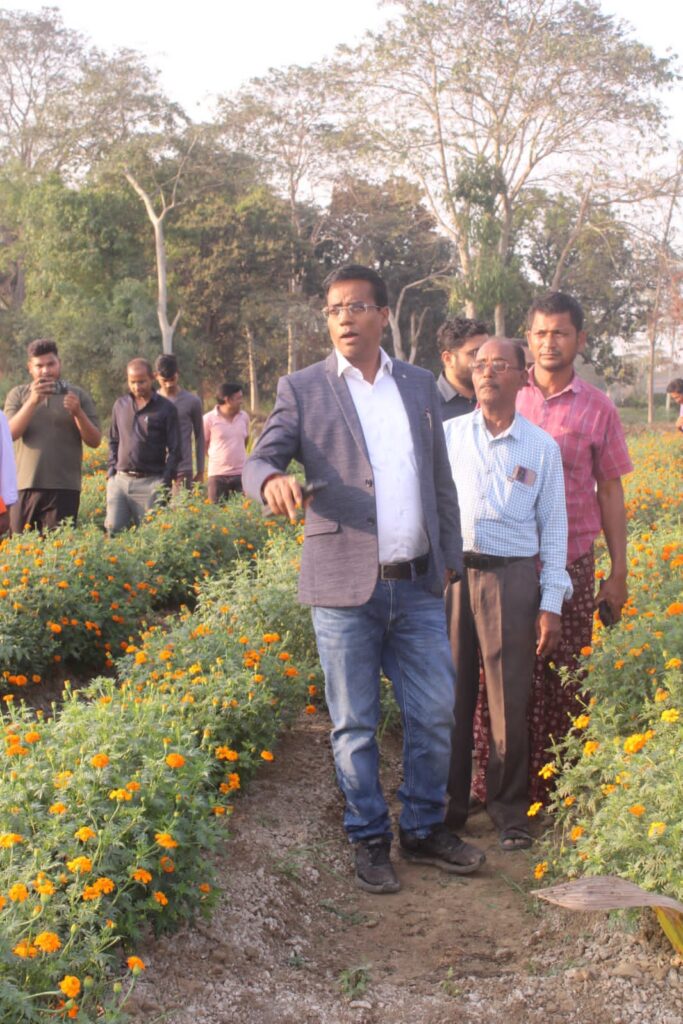कलेक्टर डॉ. संजय कन्नौजे ने छोटे नावापारा में गेंदा फूल की खेती का किया निरीक्षण