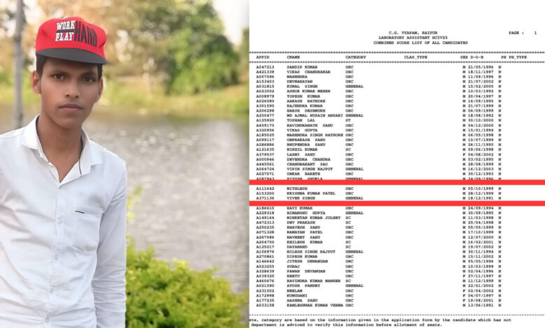 किसान परिवार के बेटा का व्यापम प्रयोगशाला परिचारक में 27 वां रैंक, गांव में खुशी की लहर….