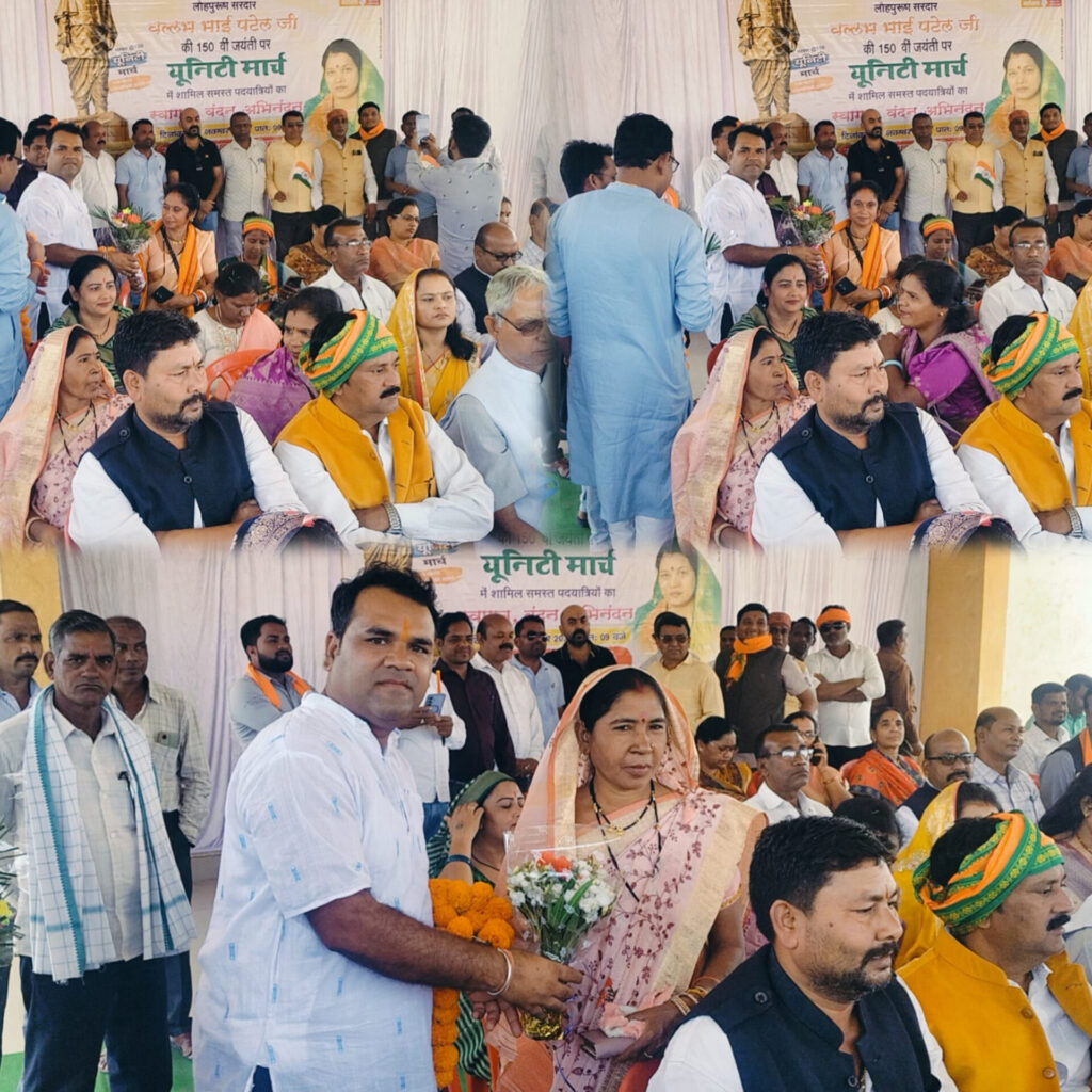 जहां माल्यार्पण करने के बाद सभी आये अतिथियों का पुष्प गुच्छ भेंट किया गया। वहीं यूनिटी मार्च पदयात्रा को संबोधित करते हुए जांजगीर लोकसभा की सांसद श्रीमती कमलेश जांगड़े ने सर्वप्रथम सभी नगरवासियों को सरदार वल्लभ भाई पटेल की 150वी जयंती की बधाई और शुभकामनाएं दी। और कहा कि लौह पुरुष सरदार वल्लभ भाई पटेल ने पूरे देश को जोड़ने में बहुत ही महत्वपूर्ण योगदान दिया है। उन्होंने देश की एकता और अखंडता के लिए जो योगदान दिया है, वह सदैव प्रेरणास्रोत रहेगा। यूनिटी मार्च जैसे आयोजन युवाओं को यह संदेश देते हैं कि हम सब मिलकर एक सशक्त एकजुट और विकसित राष्ट्र के निर्माण में योगदान दें। सरदार पटेल ने भारत को श्रेष्ठ भारत बनाने की दिशा में कार्य किया है। उन्होंने कहा कि यह पदयात्रा हमारे देश के प्रधानमंत्री नरेन्द्र मोदी और मुख्यमंत्री विष्णु देव साय के विकसित भारत के संकल्प को जन – जन तक पहुंचाने का प्रयास है। जहां कार्यक्रम को भाजपा प्रदेश उपाध्यक्ष जगन्नाथ पाणीग्राही ने भी सम्बोधित करते हुए कहा कि देश के प्रधानमंत्री नरेन्द्र मोदी ने सभी सांसदों को कहा था कि आप तीन दिनो तक पैदल यात्रा कर सरदार वल्लभ भाई पटेल के योगदानो को गांव गांव में लोगों तक पहुंचाये।
