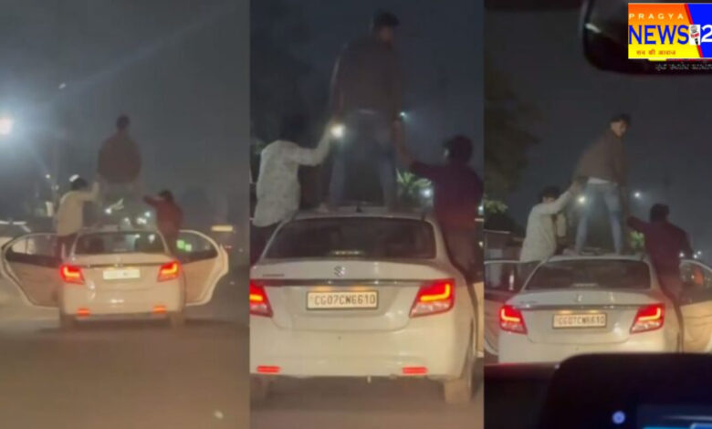 भिलाई : भिलाई के नेवई थाना के सामने बीती रात युवक कार के ऊपर खड़े होकर दहशत फैलाते नज़र आये जिसका वीडियो शोशल मीडिया में जमकर वायरल हो रहा है। वीडियो के मुताबिक, कुछ युवक अपनी जान जोखिम में डालते हुए चलती कार में ही दोनो गेट खोलकर खड़े होकर अपने साथी युवक को कार के ही छत पर खड़ा नज़र आ रहा है। जिसका किसी राहगीर ने वीडियो बनाकर सोशल मिडिया में वायरल कर दिया।