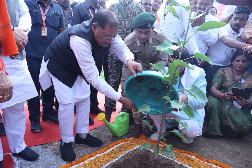 मुख्यमंत्री साय सहित अतिथियों ने सारंगढ़ में किया वृक्षारोपण