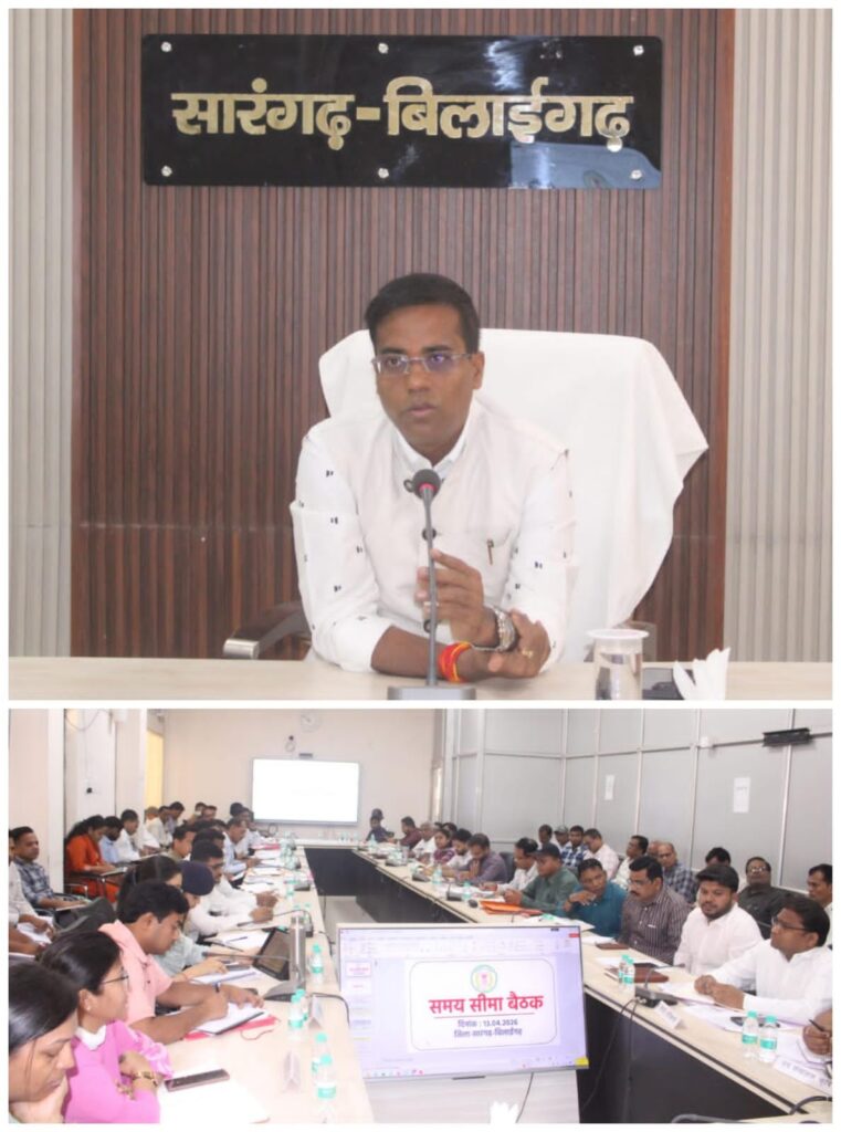 सारंगढ़ बिलाईगढ़, 13 अप्रैल 2026/कलेक्टर डॉ संजय कन्नौजे ने कलेक्टोरेट सभाकक्ष में सोमवार को समय सीमा की बैठक ली। उन्होंने मुख्यमंत्री जनदर्शन, कलेक्टर जनदर्शन एवं अन्य विभिन्न माध्यमों से प्राप्त आवेदनों पर क्रमवार निराकरण की स्थिति की जानकारी अधिकारियों से ली। उन्होंने बैठक में पंचायत एवं नगरीय निकाय सहित अन्य चिन्हित विभागों को जल संरक्षण के लिए सोख्ता गड्ढा, रेन वाटर हार्वेस्टिंग बनाने के लिए पीएम आवास निर्माण के दौरान पूर्ण करने के निर्देश दिए। उन्होंने आई गॉट कर्मयोगी प्लेटफार्म में सभी अधिकारियों कर्मचारियों को प्रशिक्षण लेने के निर्देश दिए।