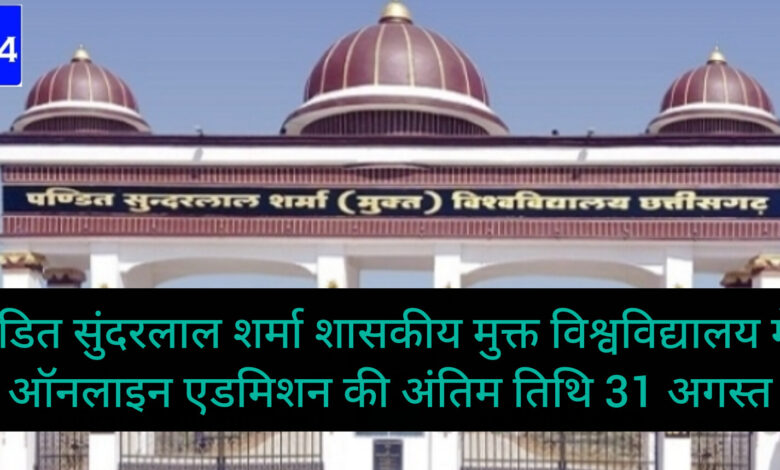 पंडित सुंदरलाल शर्मा शासकीय मुक्त विश्वविद्यालय में ऑनलाइन एडमिशन की अंतिम तिथि 31 अगस्त