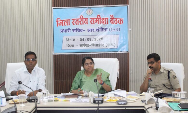 प्रभारी सचिव आर शंगीता ने की सारंगढ़ बिलाईगढ़ जिले के कार्यों की समीक्षा