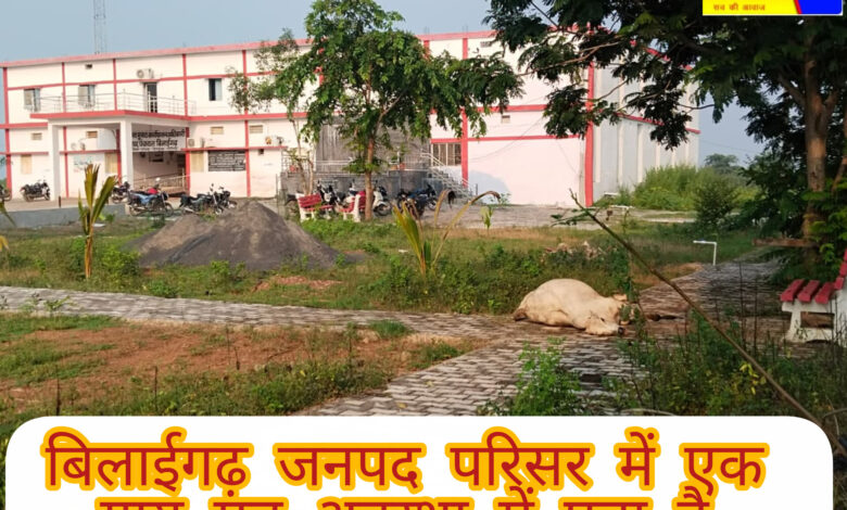 बिलाईगढ़ जनपद परिसर में एक गाय मृत अवस्था में पड़ा है ,लेकिन सुध लेने वाला कोई नहीं