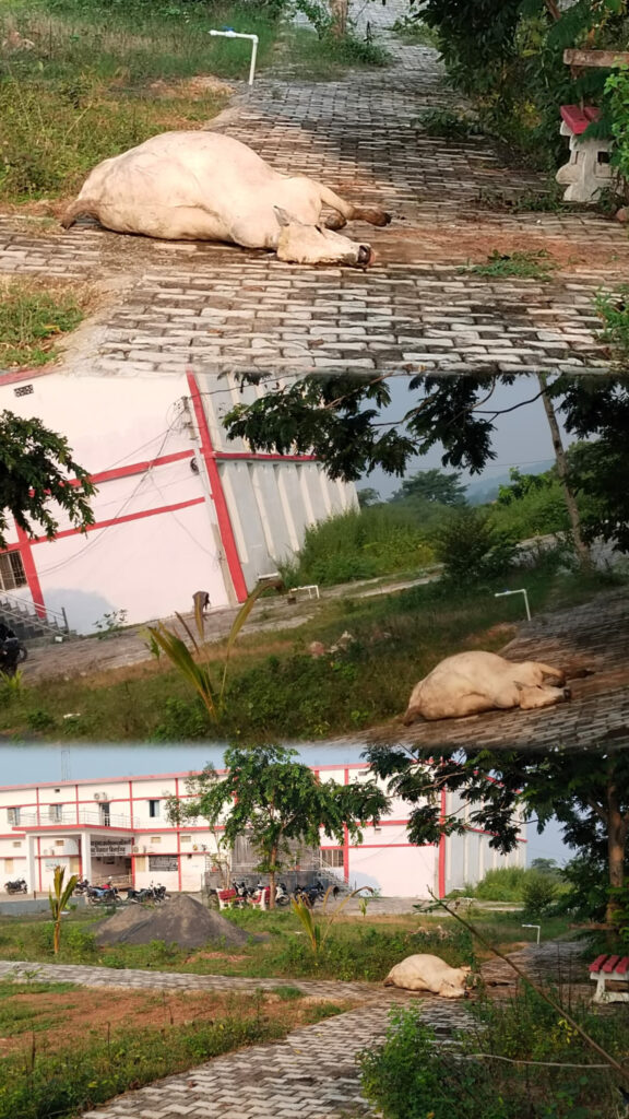 बिलाईगढ़ : जनपद पंचायत बिलाईगढ़ परिसर में बाउंड्री के अंदर एक गाय मृत अवस्था में पड़ा हुआ है जिसकी सुध लेने वाला कोई नहीं है । प्राप्त समाचार के अनुसार जनपद पंचायत बिलाईगढ़ परिसर में बाउंड्री के अंदर एक गाय मृत अवस्था में पड़ा हुआ है जिसे देखने से ऐसा प्रतीत हो रहा है कि यह दो-तीन दिन पुराना है , चारों तरफ दुर्गंध फैला हुआ है और कौवे , गिधली मृत गाय के शरीर को नोच रहे हैं, जिसकी सुध लेने वाला कोई नहीं है आज जनपद पंचायत के कर्मचारी कार्यालय आए रहे और चले गए लेकिन किसी ने इसकी सुध तक नहीं लिया ,इस संबंध में मुख्य कार्यपालन अधिकारी जनपद पंचायत बिलाईगढ़ प्रतीक प्रधान से मोबाइल से तीन बार संपर्क करने के बाद भी उन्होंने कॉल रिसीव नहीं किया ।
