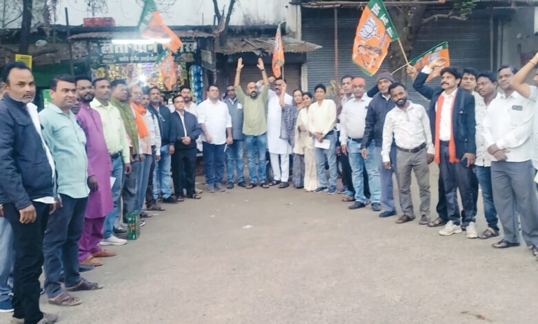 भाजपा कार्यकर्ताओं ने बिहार में एनडीए की जीत पर मनाई खुशी
