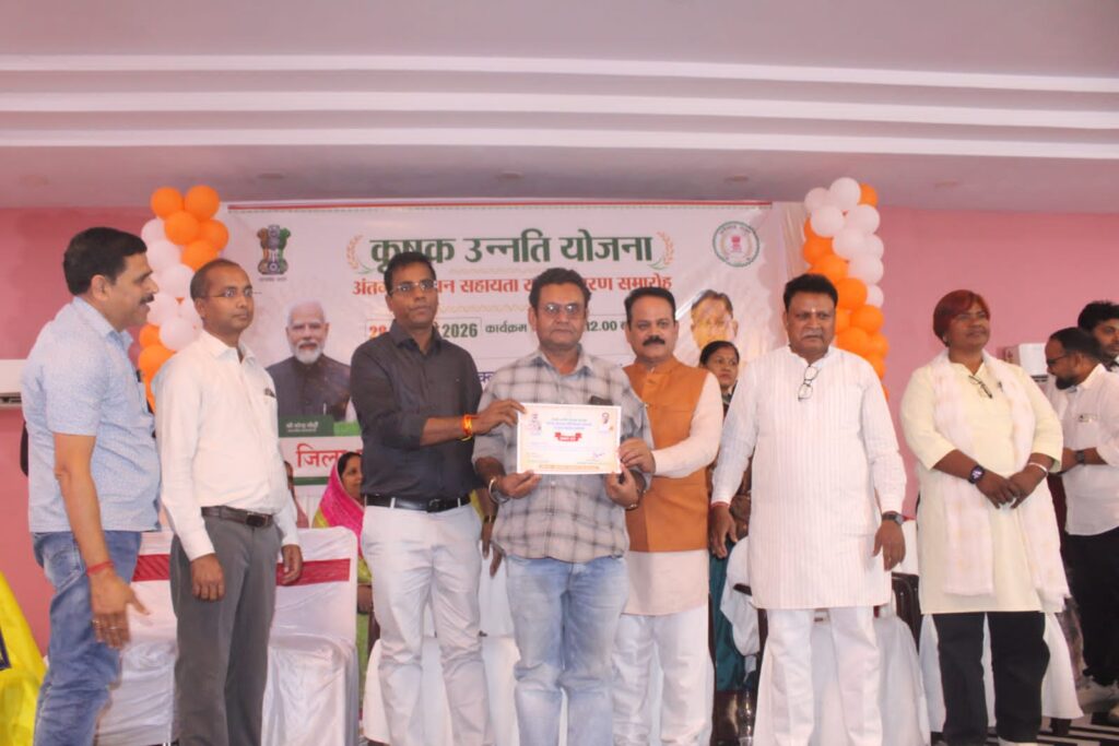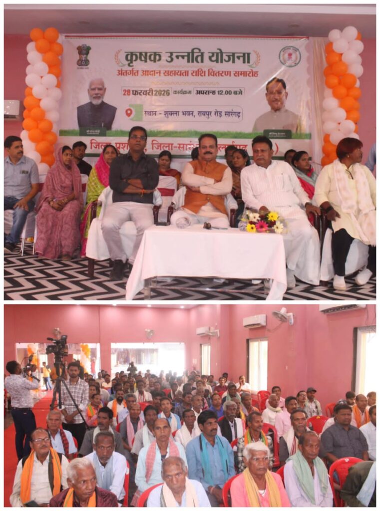 सारंगढ़ बिलाईगढ़, 28 फ़रवरी 2026/जिला मुख्यालय में कृषक उन्नत योजना के अंतर्गत आदान सहायता राशि वितरण समारोह का आयोजन शुक्ला भवन सारंगढ़ में किया गया। कार्यक्रम में प्रदेश के मुख्यमंत्री विष्णु देव साय वर्चुअल माध्यम से जुड़े। इस दौरान उपस्थित किसानों ने मुख्यमंत्री का संबोधन सुना और सरकार की विभिन्न कृषक हितैषी योजनाओं की जानकारी प्राप्त की। मुख्यमंत्री ने खरीफ विपणन वर्ष 2025-26 में 442948.84 मे.टन धान विक्रय के भुगतान राशि 104934.58 लाख रूपये जिला सारंगढ़-बिलाईगढ़ जिले के 84058 किसानों के खाते में सीधे डीबीटी के माध्यम से अंतर राशि 3237.96 लाख रुपये का हस्तांतरण बटन दबाकर किया। इस अवसर पर बड़ी संख्या में किसान, जिला पंचायत के अध्यक्ष संजय भूषण पाण्डेय, सदस्य लता लक्षमे, शिवकुमारी साहू, जनपद पंचायत अध्यक्ष सारंगढ़ ममता ठाकुर, पूर्व विधायक कामदा जोल्हे, सत्ता धारी दल के जिला अध्यक्ष ज्योति पटेल, उप संचालक कृषि आशुतोष श्रीवास्तव, खाद्य अधिकारी गणेश कुर्रे, पत्रकारगण आदि उपस्थित थे।