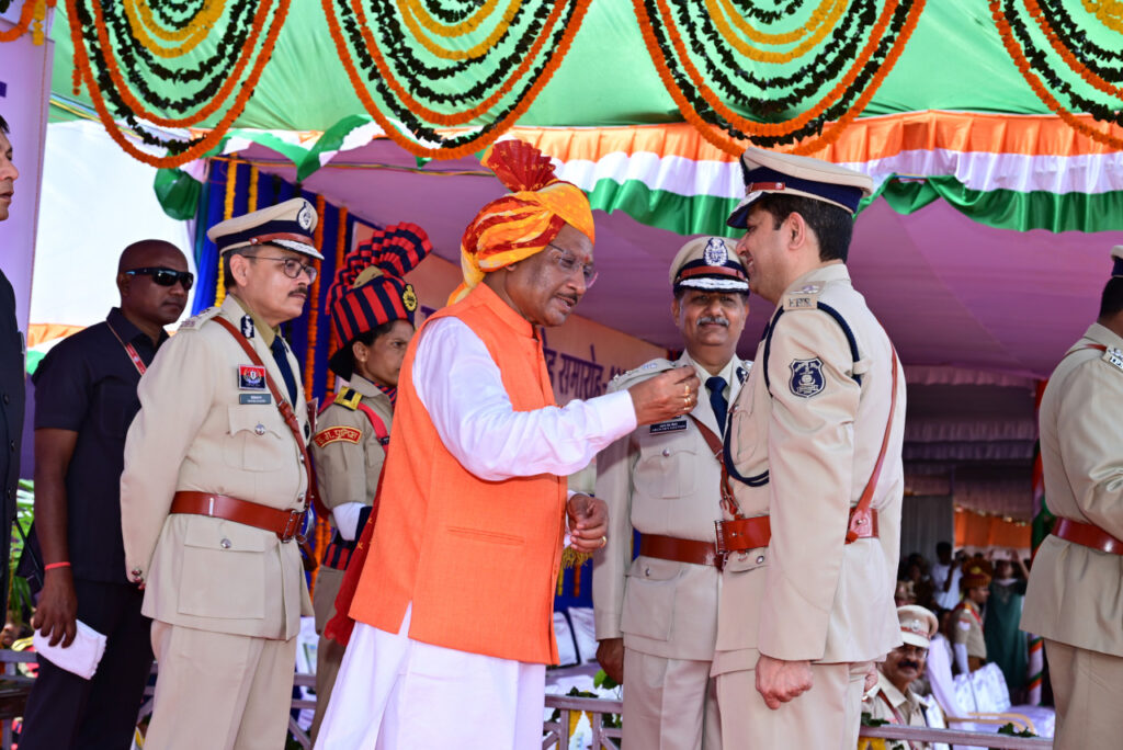 पुलिस परेड ग्राउंड में आयोजित स्वतंत्रता दिवस समारोह के मुख्य आयोजन में मुख्यमंत्री श्री विष्णुदेव साय ने 35 पुलिस अधिकारियों और जवानों को उत्कृष्ट सेवा के लिए पुलिस पदकों से सम्मानित किया। श्री साय ने पुलिस वीरता पदक से 11, राष्ट्रपति पुलिस पदक से 01, सराहनीय सेवा के लिए पुलिस पदक से 11, सुधार सेवा पदक से 05, गृहरक्षक एवं सराहनीय सेवा पदक 01 और राज्य स्तरीय एवं पुलिस महानिदेशक पदकों से 06 अधिकारी-कर्मचारियों को अलंकृत किया।