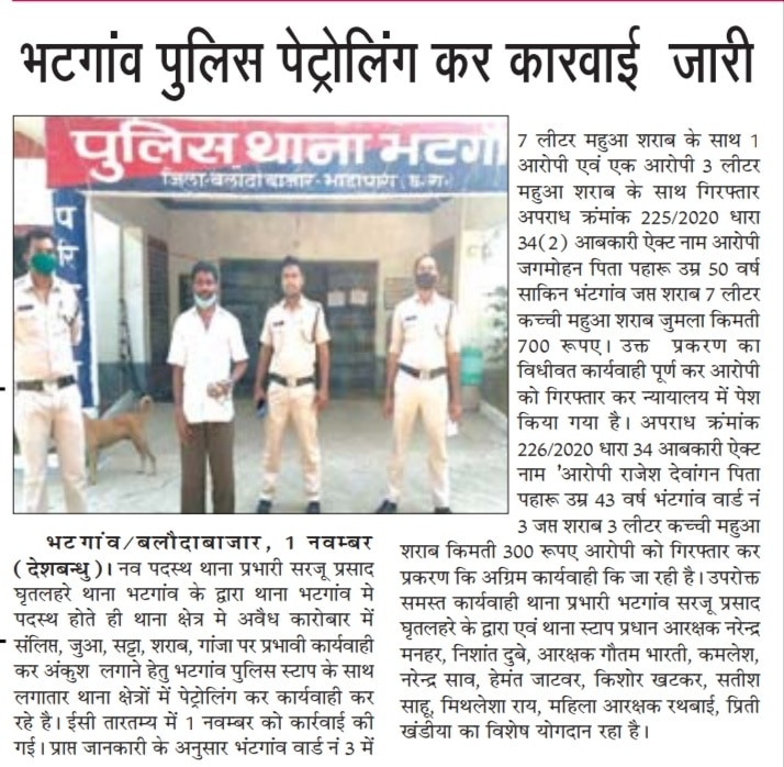 भटगांव मे पहलीबार ऐसे थाना प्रभारी मिला था जो क्षेत्र के सभी वर्ग के लोगों के दिल में बसे और कुछ ही समय में इस क्षेत्र को अवैध शराब, जुआ, सट्टा, गांजा इत्यादि से मुक्त कराने मे सफल रहे।