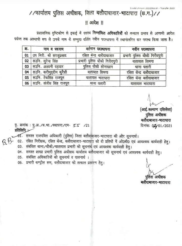 भटगांव थाना प्रभारी एसपी घृत लहरे का मध्य रात्रि के दौरान अचानक लाइन अटैच होना और गिरौदपुरी चौकी में ट्रांसफर आदेश होने के बौजुद उन्हें फिर से हटाना, समझ से परे