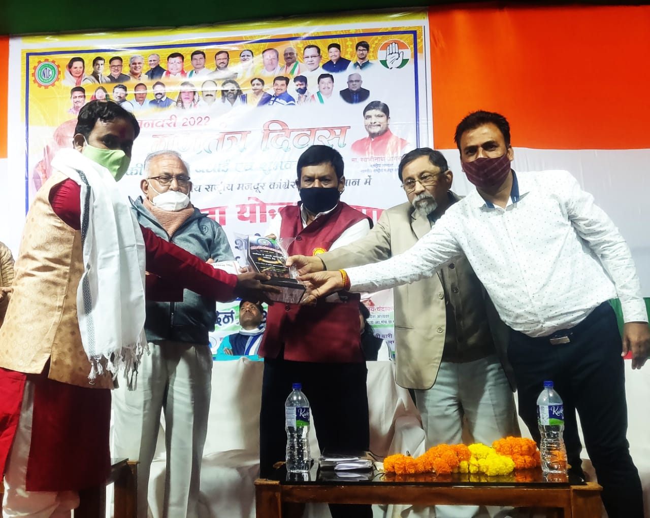 काँकेर : आज़ादी के 75वीं वर्षगांठ अमृत महोत्सव वर्ष में कल गणतंत्र दिवस के संध्या बेला में भारतीय राष्ट्रीय मजदूर कांग्रेस (इंटक) व मतदाता जागृति मंच छत्तीसगढ़ के तत्वाधान में आयोजत समारोह में कोविड 19 महामारी के दौरान उत्कृष्ट योगदान हेतु शासकीय इंदरु केंवट कन्या महाविद्यालय काँकेर से प्रो. अजय कुमार पटेल व उनके टीम को अपने जान को जोखिम में डालकर जरूरतमंदों, गरीब दीन-दुखियों की अतुलनीय सामुदायिक सेवा, पोषण एवं स्वास्थ्य जागरूकता, कोरोना टीकाकरण प्रेरणा, निःशुल्क खाद्य एवं मास्क वितरण, कोरोना के खिलाफ व्यापक जनजागरूकता के लिए पुराना कम्युनिटी हॉल काँकेर में कोरोना योद्धा सम्मान से नवाजा गया.