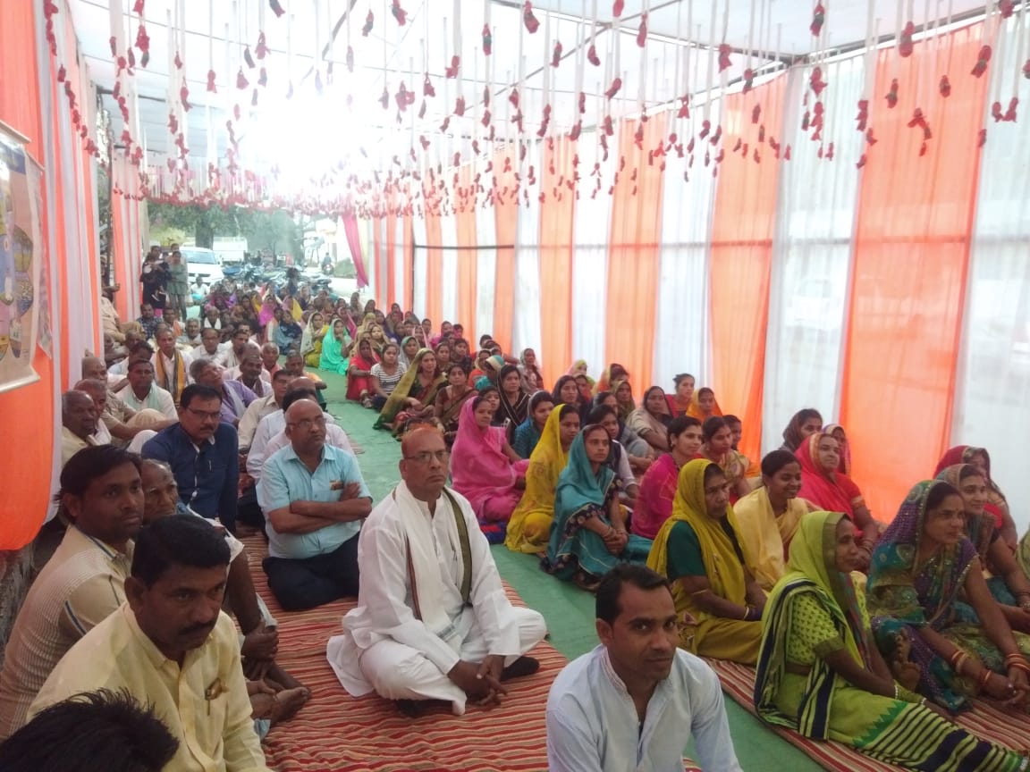 उन्होंने कहा कि आज का मानव के पास धन-दौलत, इज्जत,सोहरत सब कुछ है फिर दुःख,अशांति,तनाव टेंसन में है क्योंकि आज का मानव पैसा को ही सब कुछ समझता है। दिन रात सिर्फ पैसा कमाने में लगा हुआ है। पैसा कमाने के मोहवश यह भी भूल गया है कि पैसा किस तरह कमाया जाय उसका भी ज्ञान नही है।किसी की चोरी,डकौती ,पाप, अत्याचार,किसी को धोखा दे करके कमाया गया धन यदि घर में आये तो यही धन तनाव,टेंसन, दूख का कारण बनता है ।पैसा ऐसे कमाए जिससे किसी को दुःख तकलीफ न हो जिससे घर में सुख शांति का वातावरण बनता है।माताओं के लिये कहा कि घर भी एक मंदिर है माता चाहे तो घर को स्वर्ग बना दे चाहे तो नर्क ये सब उनके हाथों में है।आजकल की माताये टीवी को किचन से ऐसे सेट करवाती है जिसे देखते देखते खाना बना सके परंतु क्या यह सही है यदि माताये टीवी देखते देखते खाना बनाती है तो खाना बनाते जो भी देख रही है जो भी सोच रही है सबका प्रभाव खाना में पड़ता है।यदि टीवी में होने वाली लड़ाई झगड़ा को सोचते सोचते खाना बनाये तो खाना खाने वाले व्यक्ति के ऊपर भी उसका गलत प्रभाव पड़ेगा।माताओं को चाहिए की खान बनाते परमात्म याद में रहकर खाना बनाये ।घर भी मंदिर है मंदिर में प्रसाद सुद्धता के साथ बनाया जाता है । दीदी जी ने कहा जैसा अन्न वैसा मन,जैसी पानी वैसी वाणी, जैसा संग वैसा रंग।संगती भी सोच समझकर करना चाहिए। कौरवों का सलाहकार सकुनी था और पांडवों का सलाहकार श्रीकृष्ण थे और परिणाम क्या हुआ आप सभी जानते है।इस तरह सभी ग्रामवासीयों को आध्यात्मिक गीता ज्ञान को अपने जीवन में ग्रहण करने का उपदेश दीदी जी ने दिया।अंत में सभी को एक एक पर्ची देकर उसमे अपनी एक एक बुराई लिखने को कहा गया और उसी बुराई रूपी रावण को जलाकर यज्ञ की वेदी में स्वाहा कर कथा का समापन किया गया।
