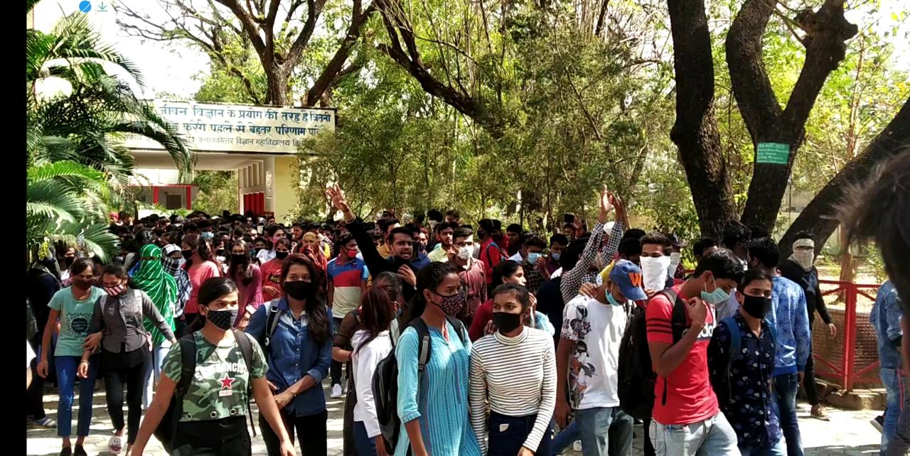 ऑनलाइन परीक्षा की मांग को लेकर छात्र संघ विज्ञान महाविद्यालय व ज़िद्दी युथ ने किया घेराव