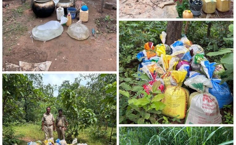 छिचपानी के जंगल में सारंगढ़ आबकारी टीम ने लगभग ढाई लाख के अवैध शराब और लाहन जप्त किया