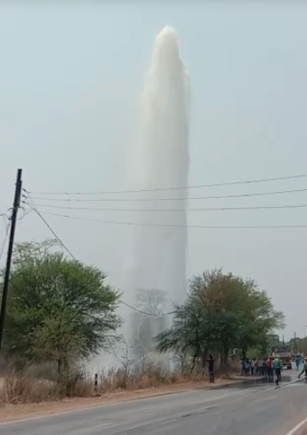 जीएमआर पावर प्लांट तक बिछा पाइपलाइन फटा , फव्वारे के रूप में बह गया कई लीटर पानी
