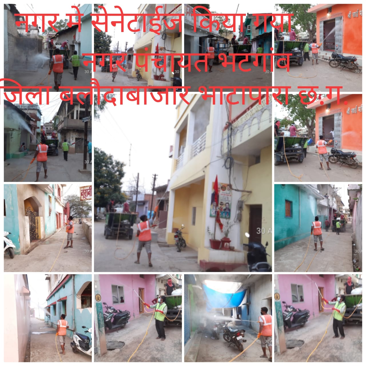 स्थानीय नगर पंचायत भटगांव के प्रत्येक वार्ड में रोजाना सैनिटाइजर का छिड़काव कर कोरोनावायरस संक्रमण से बचाव एवं सुरक्षा कार्य किया जा रहा है.