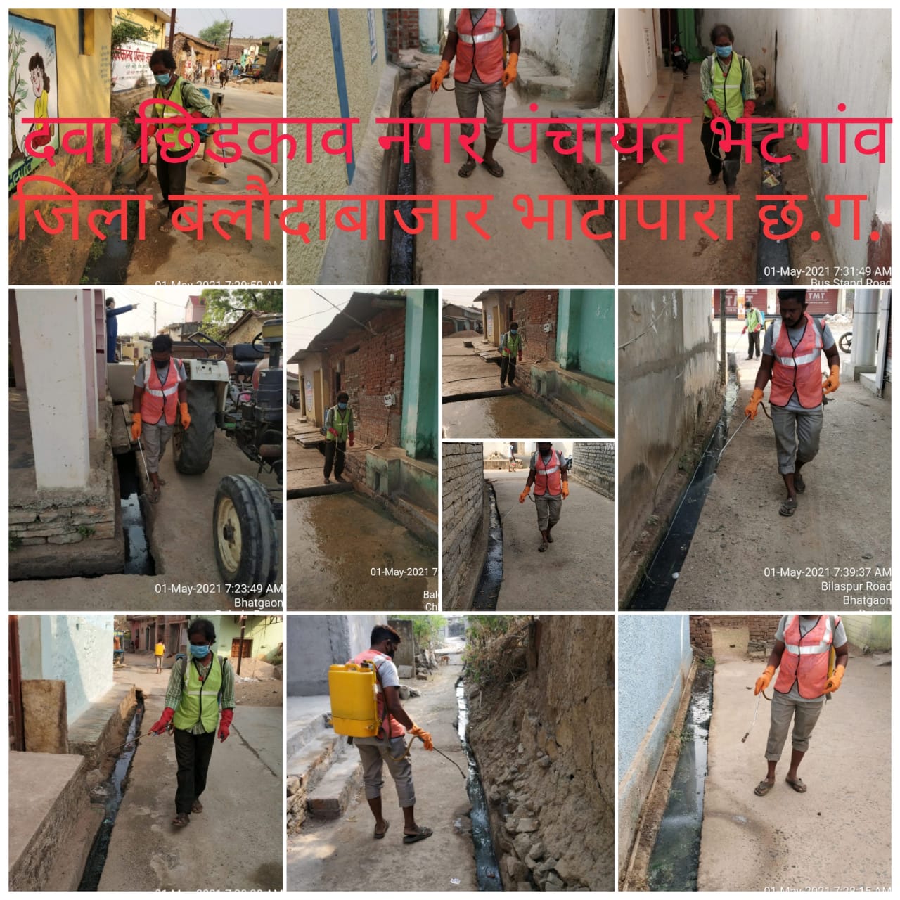 भटगांव – नगर पंचायत भटगांव के प्रत्येक वार्ड एवं गली मोहल्ले को नगर पंचायत कर्मचारियों द्वारा सेनेटराइजिंग का कार्य किया जा रहा है. देवांगन मोहल्ला, ढाबापारा, मेन रोड, पुराना हटरी, साईं मंदिर इत्यादि स्थानों पर कल सेनेटाइज किया गया.