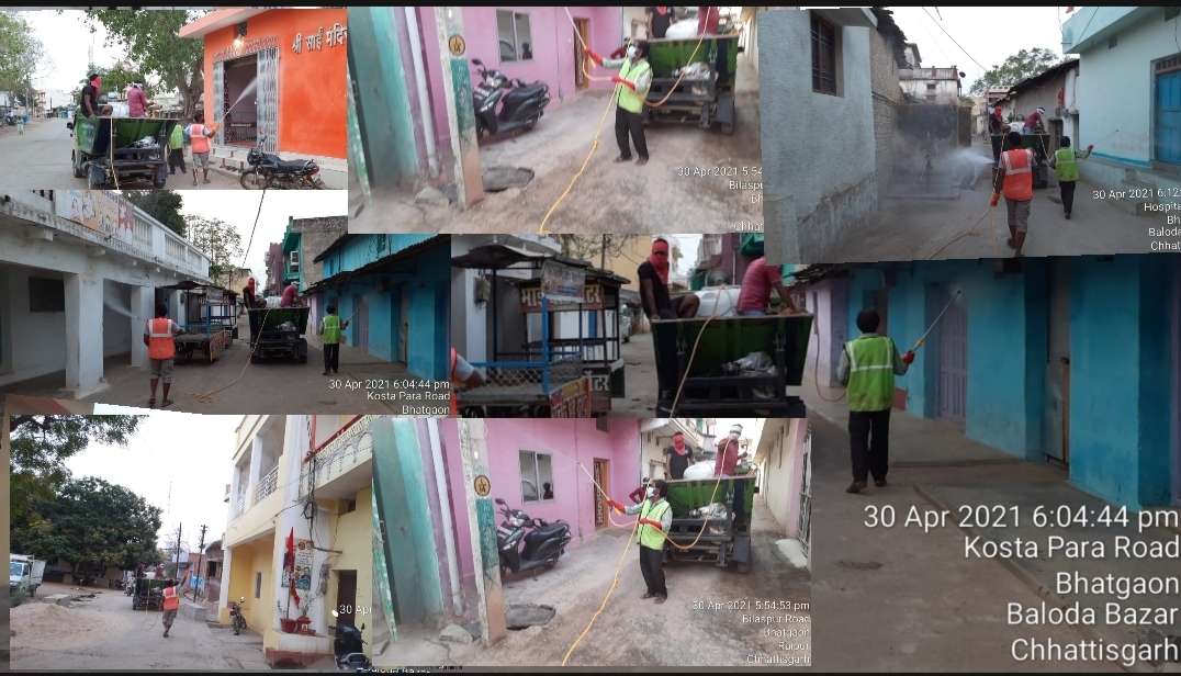 भटगांव नगर अध्यक्ष, उपाध्यक्ष एवं सी एम ओ की पहल पर नगर को कोरोना से किए बचने के उपाय, वार्डों को किया गया सेनेटाईजिंग, वार्ड के प्रत्येक घरों में सर्दी, बुखार आने वाले लोगों को किया चिन्हाकित,18+ और 45+ वाले सभी लोगों को वेकसीन लगवाने हेतु कर रहे हैं जागरूक