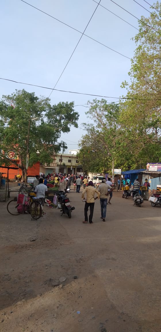 भटगांव – नगर पंचायत भटगांव के सब्जी मार्केट में जबरदस्त भीड़ बढ़ते जा रहा था, सब्जी बेचने से लेकर सब्जी खरीदने वाले ग्राहकों को भीड़ बिना सोशल डिस्टेंस से सब्जियों की खरीदी बिक्री किया जा रहा था. नगर पंचायत के बार बार समझाईस और कार्यवाही के बौजूद मानने को तैयार नहीं हो रहे हैं जबकि भटगांव नगर के प्रतिनिधि, अध्यक्ष, उपाध्यक्ष, पत्रकार अधिकारी एवं संगठन के सदस्य बार बार कोरोना से बचाव हेतु लोगों को जागरूक किया जा रहा है. लेकिन इस कड़ी धुप एवं कोरोना काल में सब्जी विक्रेता घूम घूम कर बेचने में कई परेशानियो एवं दिक्क़तो का सामना करना पड़ रहा है जिससे मजबूरन अपने सब्जियों को सब्जी मार्केट में खफाने के लिए भटगांव एवं आसपास के सब्जी विक्रेता पहुंच रहे हैं जहाँ उनके आते ही ग्राहकों की भीड़ लग जा रही है.