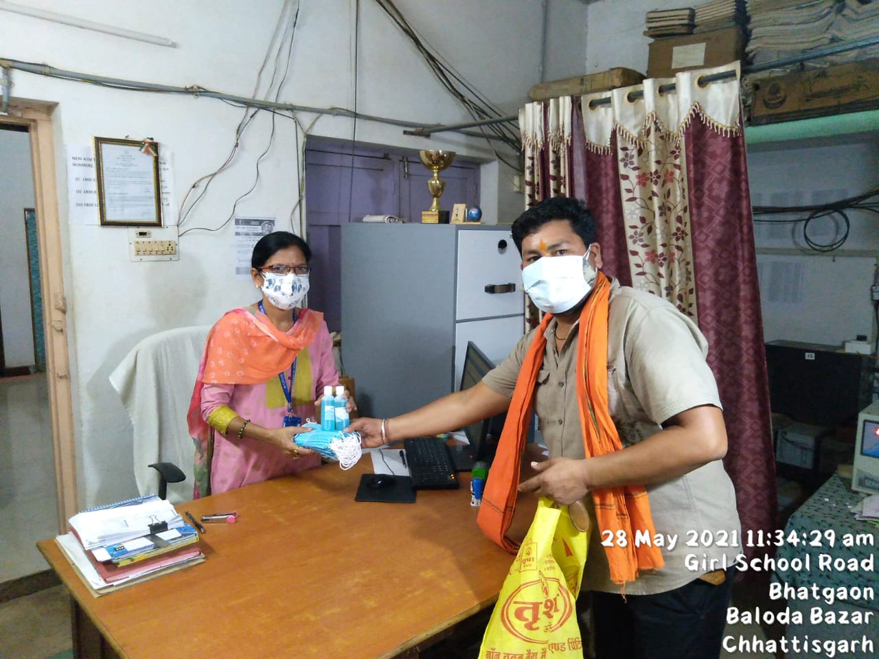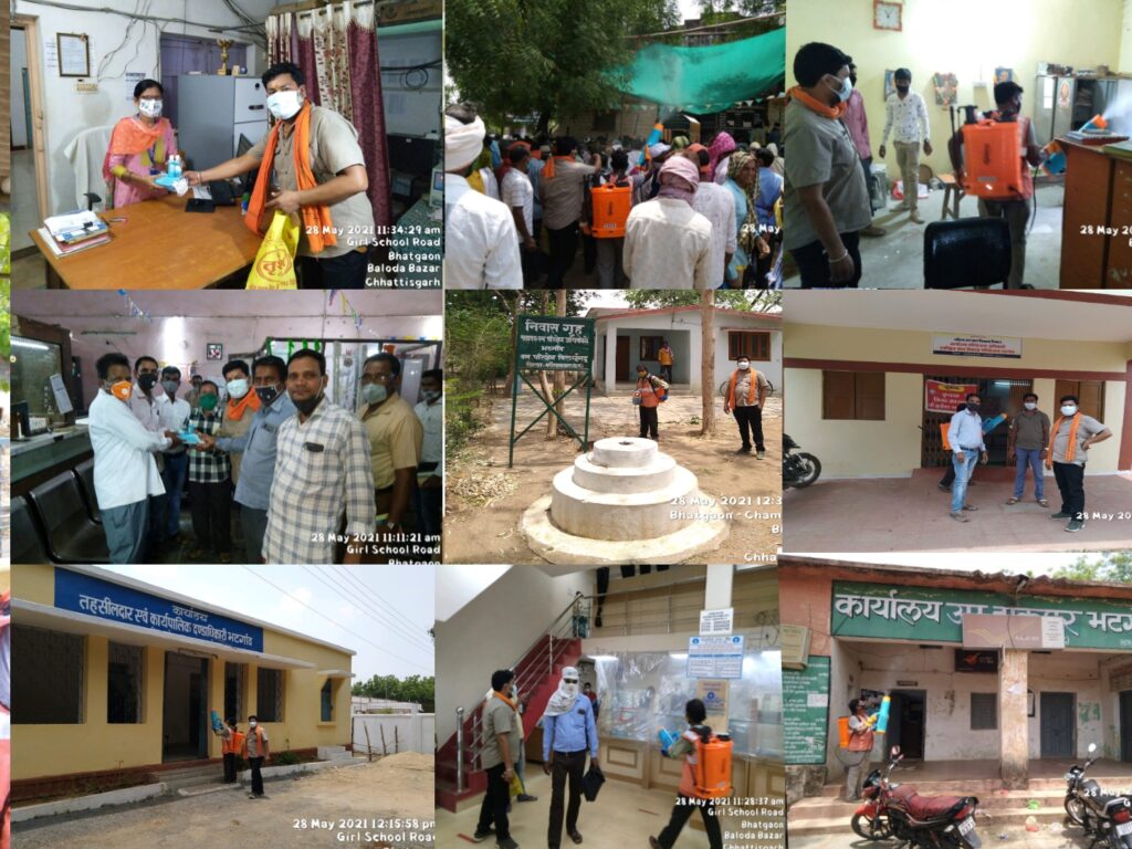 जहाँ भटगांव के वार्ड नं 2 पार्षद प्रतिनिधि संजीव साहू(गुड्डा) के नेतृत्व में सभी ऑफिसों को सेनेटाइज किया गया और मास्क व सेनेटाइजर वितरण किया गया। नगर के को ऑपरेटिव बैंक, स्टेट बैंक एवं ग्रामीण बैंक को सेनेटाइज करके मास्क औऱ सेनेटाइजर ऑफिसियल कार्य हेतु प्रदान किया गया।