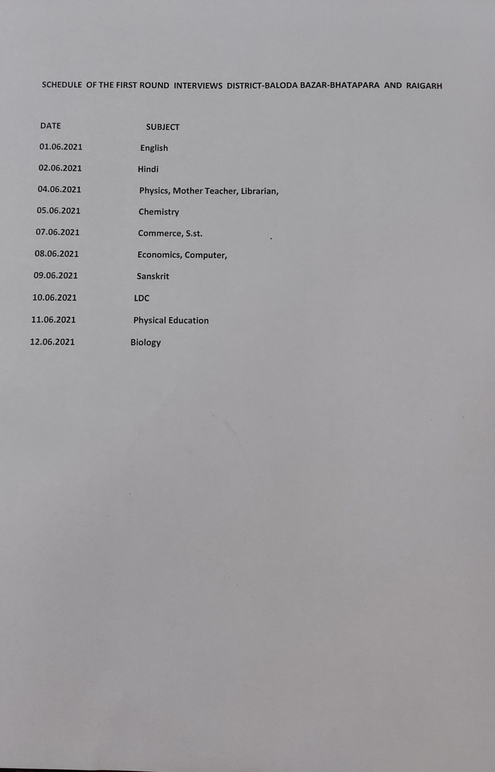 छत्तीसगढ़ – DAV इंग्लिश मीडियम स्कूल छत्तीसगढ़ में vacancy के लिए आवेदकों का शॉर्टलिस्ट जारी कर दिया गया है, जिसमे पात्र व अपात्र आवेदकों की सूची जारी किया गया है। प्रथम चरण में आज इंग्लिश विषय के चयनित आवेदकों का गूगल मीट के जरिये इंटरव्यू लिया गया। सभी विषय से पात्र आवेदकों को 1 जून से 14 जून तक इंटरव्यू लिया जा रहा है। इस महिने जून तक इंटरव्यू आवेदकों का फाइनल लिस्ट भी जारी किया जायेगा जहां एक सप्ताह के अंदर चयनित कैंडिडेट को जोइनिंग भी लेना पड़ेगा। अधिक जानकारी के लिए www.davbhilai.org या www.davchhal.com से प्राप्त कर सकते हैं ।
