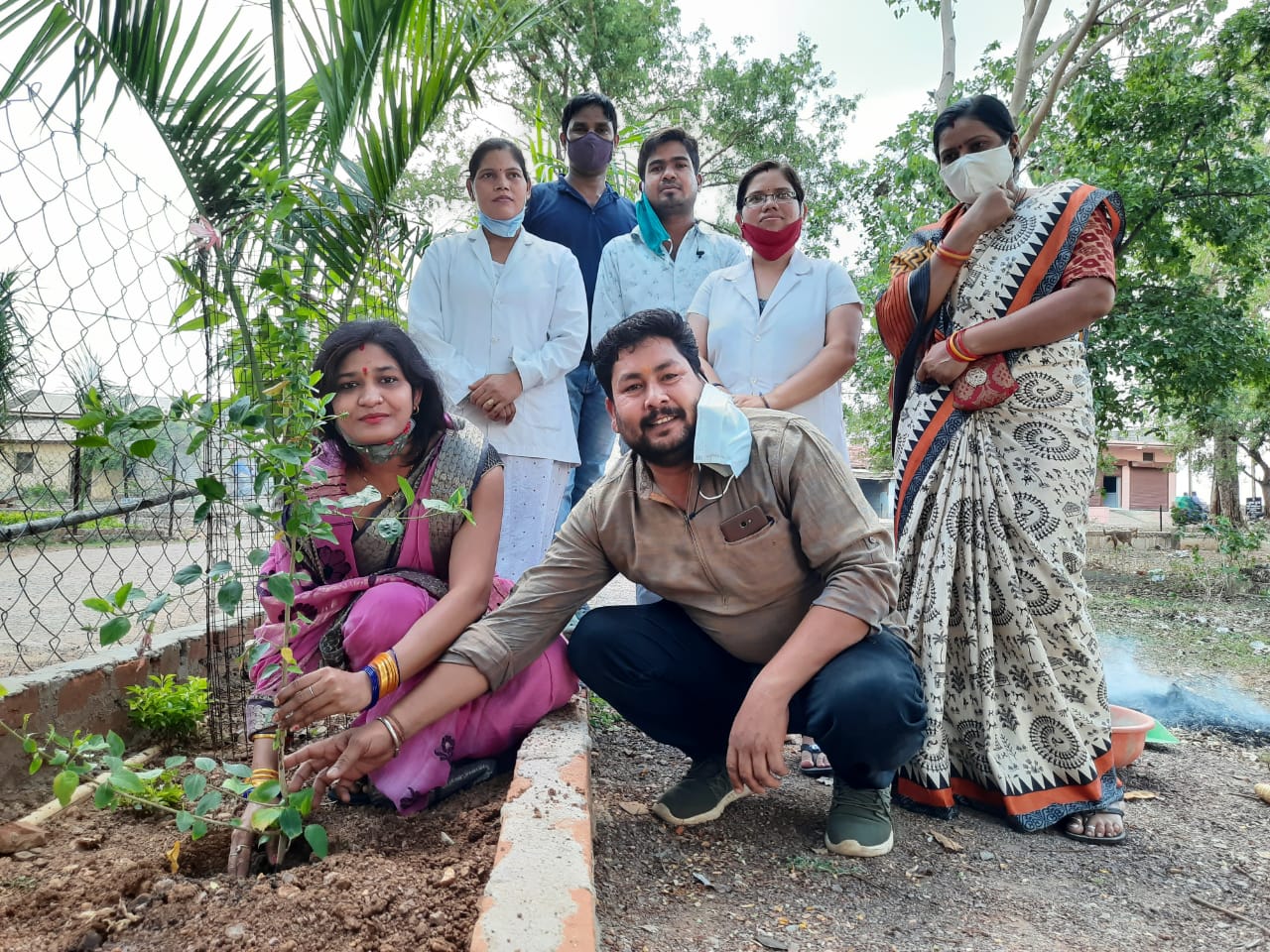 प्राथमिक स्वास्थ्य केंद्र में पार्षद शीला साहू एवं लक्ष्मी साहू द्वारा किया गया वृक्षारोपण