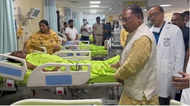 रायपुर। दुर्ग के कुम्हारी के पास एक निजी कंपनी के हुई बस दुर्घटना के घायल कर्मचारियों से आज मुख्यमंत्री विष्णुदेव साय ने AIIMS पहुंचकर मुलाकात कर उनका हालचाल जाना। चिकित्सकों को घायल कर्मचारियों के समुचित ईलाज का प्रबंध करने को कहा और घायलों के शीघ्र स्वास्थ्य लाभ की कामना की।