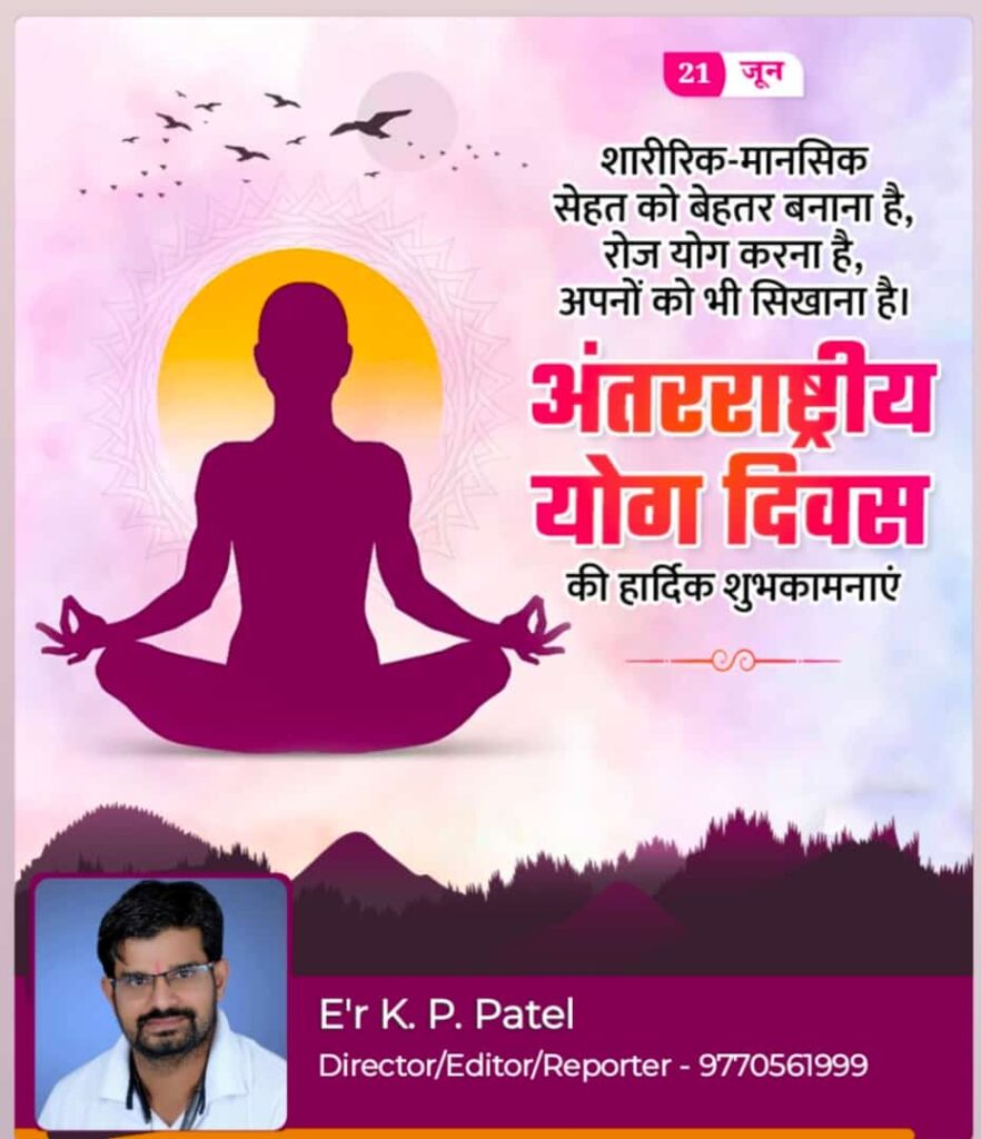 वहीं प्रज्ञा इंस्टिट्यूट के डायरेक्टर व युवा पत्रकार के. पी. पटेल ने अपने कोचिंग संस्थान मे प्रातः 8 -9 बजे तक योगा अभ्यास कराते हुये स्मरण शक्ति बढ़ाने, बच्चों के ऊंचाई बढ़ाने , कब्ज दूर करने के उपाय, आँख की रोशनी बढ़ाने के उपाय इत्यादि विषयों पर योग एवं प्राणायाम का अभ्यास कराया और उपस्थित क्लास 1 से 12 वीं तक के बच्चों को कहा कि आप सभी को प्रतिदिन कम से कम आधा घंटे समय निकालकर प्रातः योगा अभ्यास व ध्यान योग कीजिये तभी आपका स्मरण शक्ति बढ़ेगा साथ मे आप हमेशा स्वस्थ रहेंगे तो पढ़ाई मे भी मन लगेगा और पढ़ाई मे मन लगेगा तो आप सफलता हासिल कर उच्च शिखर तक पहुंच पाओगे.