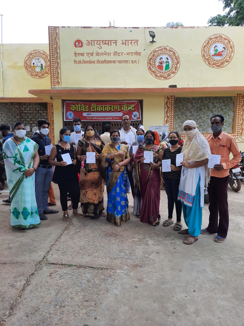 बिलाईगढ़ :- लगातार क्षेत्र मे बढ़ते कोरोना संक्रमण को देखते हूए हिदायत बरतने की अपिल ऊपर अपिल किया जा रहा है साथ ही लोगो को कोरोनो संक्रमण दूर भगाने के लिए वैक्सीनेशन करने और वैक्सीन लगाने के लिए साथ ही साथ नगर पंचायत भटगांव मे बढ़ते कोरोना महामारी को देखते हुए एक बार फिर से भाजपा महिला मोर्चा की बेटी बचाओ बेटी पढ़ाओ की जिला संयोजक एवं वार्ड क्रमांक 1 की पार्षद लक्ष्मी साहू, महिला मोर्चा की महामंत्री मंजू कुर्रे के साथ सावित्री अजगल्ले द्वारा लोगो को प्रेरित कर वैक्सीन लगवाने की अपिल की जा रही है। साथ ही स्वास्थ्य केन्द्र पहुंच कर भी वैक्सीन लगवाने के लिए प्रेरित भी किया जा रहा है।