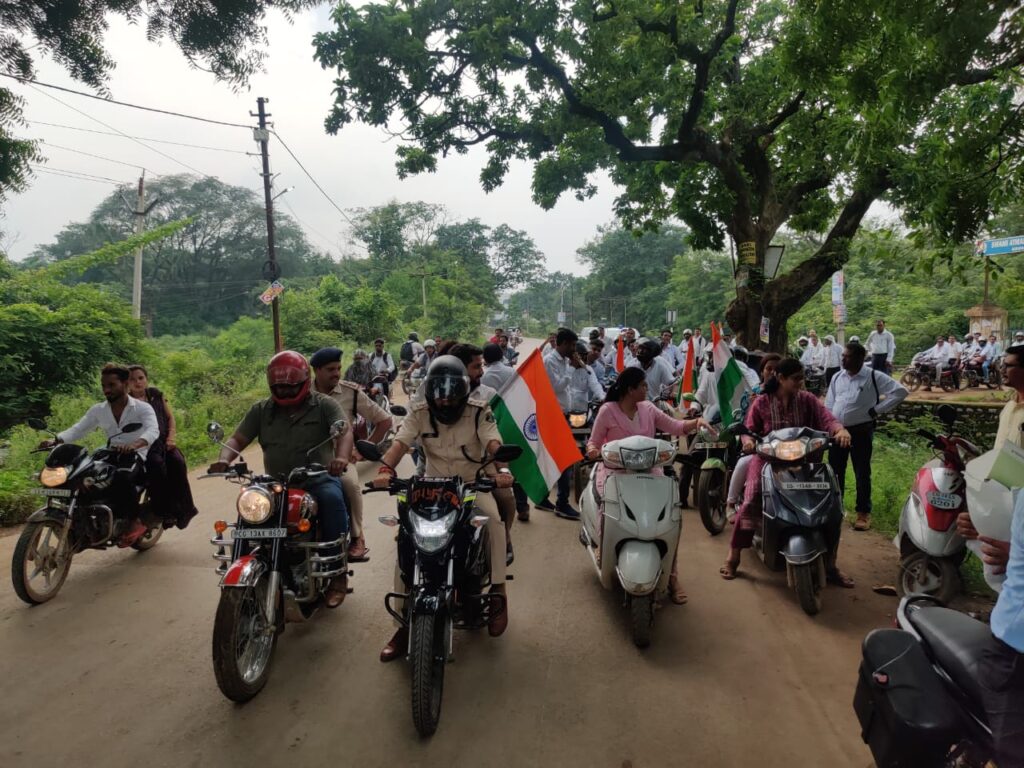 सारंगढ़ बिलाईगढ़, 12 अगस्त 2024/ हर घर तिरंगा कार्यक्रम अंतर्गत सेजेस स्कूल सारंगढ़ से भारत माता चौक तक तिरंगा बाइक रैली का आयोजन किया गया। डीईओ वर्षा बंसल, एसडीएम अनिकेत साहू, सीईओ जनपद संजू पटेल एवं जिले के समस्त संकुल शैक्षिक समन्यवयक सहित सेजेस सारंगढ़ क़े शिक्षक, स्कूल और कालेज क़े युवा बड़ी संख्या में शामिल थे सारंगढ़ में शिक्षकों की टोली हाथ में तिरंगा झंडा लिए भारत माता की जय, वंदे मातरम आदि देशप्रेम के उल्लास, उमंग भरे नारों ने नागरिकों को देशप्रेम की भावना से सराबोर किया है