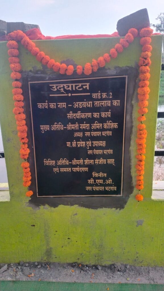 जीवन जीने के लिए आवश्यक तत्वों में जल को सर्वोपरि माना गया है। यदि जल की स्थान की सौंदर्यता से परिपूर्ण हो तो जीवन भी सौंदर्य बन जाता है। बुजुर्गो ने कहा है।कि सुबह शाम की हवा लाख रुपए की दवा इस कथन को चरितार्थ करने में नगर पंचायत भटगांव के परिषद ने वार्ड क्रमांक 2 में 50=00 लाख की लागत से सुप्रसिद्ध अडबंधा तालाब को सौंदर्यीकरण कराने में अपना विषेश किरदार निभाया जहां लोग तालाब पार में बैठने के राजी नहीं होते। आज तालाब सौंदर्यीकरण की ही देन है कि लोग सुबह शाम टहलते हुए स्वच्छ परिवेश का भरपूर आनंद ले रहे हैं। वहीं दूसरी तरफ वार्ड क्रमांक 12 में 48 =00 लाख की लागत से सर्वसुविधायुक्त मुक्तिधाम का लोकार्पण किया। इसके बनने के बाद नगर भटगांव में दो सर्वसुविधायुक्त मुक्तिधाम हो गया।