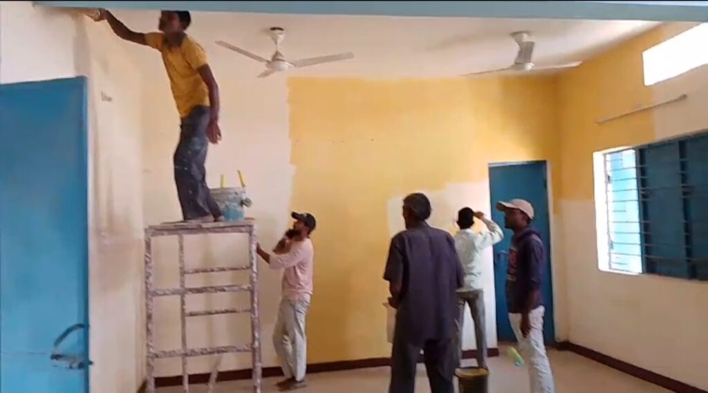 शिकायत एवं खबर प्रकाशन के बाद भवन का किया गया रंग रोगन एवं जाँच हेतू कार्यवाही