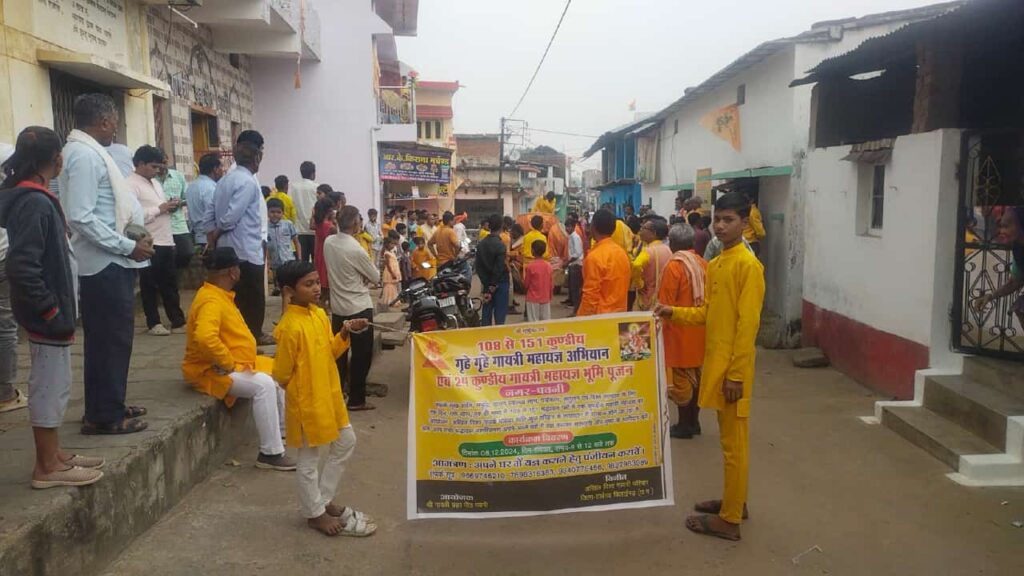 बाजे गाजे के साथ पवनी मे 7 से 10 जनवरी 2025 मे होने वाले 24 कुण्डीय गायत्री महायज्ञ प्रचार प्रसार