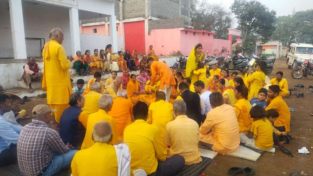 बिलाईगढ़ – विश्व के समस्त प्राणियों का मंगल,उनके अधिकारों का रक्षण और विश्व शान्ति स्थापना के उद्देश्य से नगर पंचायत पवनी मे 8 दिसंबर रविवार को 201 घरों मे 201 प्रज्ञा पुरोहितों द्वारा गायत्री यज्ञ संपन्न कराया गया। सभी के सुखी जीवन एवं सबके उज्जवल भविष्य एवं लोक कल्याण की भावना से सद्बुद्धि की देवी माँ गायत्री को आहुतियाँ प्रदान की गई जहाँ सभी घर परिवार मे सदस्य बढ़ चढ़कर यज्ञ कार्यक्रम मे सम्मिलित हुये और अपने घर परिवार सहित पुरे नगर का वातावरण शुद्ध किया.