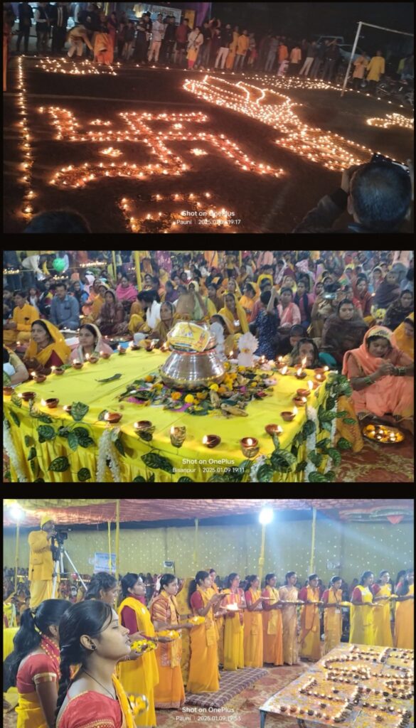 24 कुण्डीय गायत्री महायज्ञ के तृतीय दिवस मे विभिन्न संस्कार निःशुल्क संपन्न, सायंकालीन दीप महायज्ञ का आयोजन, 3100 दिपो से सजा पंडाल