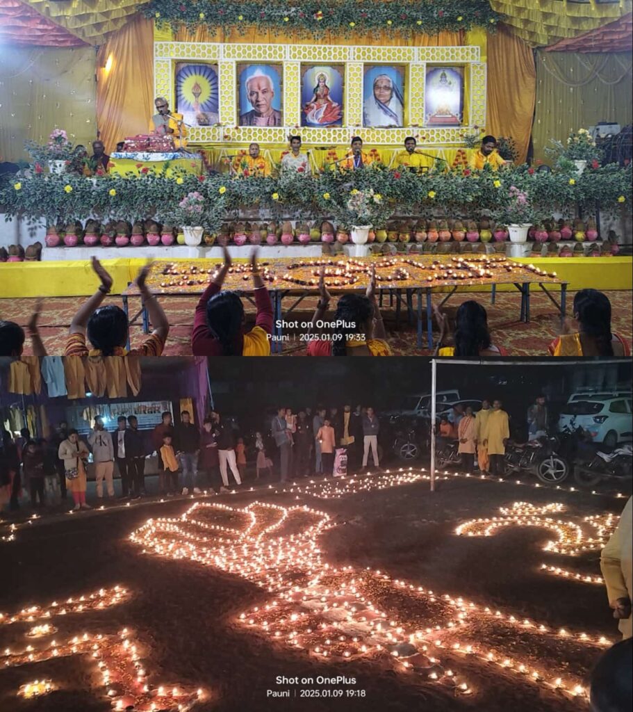 श्रद्धा जीवन में सकारात्मकता और आध्यात्मिकता का आधार है। यह न केवल हमें आत्मबल प्रदान करती है, बल्कि हमारे विचारों और कर्मों को भी पवित्र और उच्च बनाती है।श्रद्धा एक ऐसा गुण है जो हमें हर चुनौती का सामना धैर्य और समर्पण के साथ करने की शक्ति देता है। यह हमारे भीतर विश्वास, आस्था और दिव्यता को जागृत करता है, जिससे हम अपने जीवन को एक उच्च उद्देश्य की ओर प्रेरित कर सकते हैं।इसे सहेजने का अर्थ है, अपने मन और आत्मा को नकारात्मकता से दूर रखते हुए, सत्कर्मों और सकारात्मक सोच के साथ जीवन जीना। श्रद्धा हमें यह सिखाती है कि सच्चे प्रयास और विश्वास से ही जीवन का वास्तविक उद्देश्य प्राप्त किया जा सकता है। सायंकालीन दीप महायज्ञ मे 3100 दीपक प्रज्वलित किया गया जहाँ दीप से कई मनमोहक कला का प्रदर्शन किया गया जहाँ दिपो से स्वास्तिक, ॐ एवं मशाल का आकर्षक सजावट किया गया था जो आकर्षक का केंद्र बना. नगर के महिलाओ एवं बहनो ने अपने थाल मे दीपक सजाकर पंडाल पहुचे जहाँ दीप महायज्ञ के साथ दीपोत्सव पर्व मनाया. पूरा नगर दिपो से जगमगाता हुआ दिखाई दिया जैसे दीपावली पर्व मनाया जा रहा हो. यह दीपोत्सव पर्व नगर के लिए बहुत ही आकर्षक रहा.