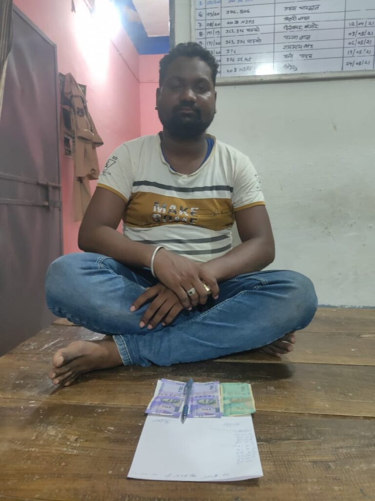 आरोपी के कब्जे से 02 लीटर हाथ भट्टी महुआ शराब कीमती 200/ रुपए जप्त