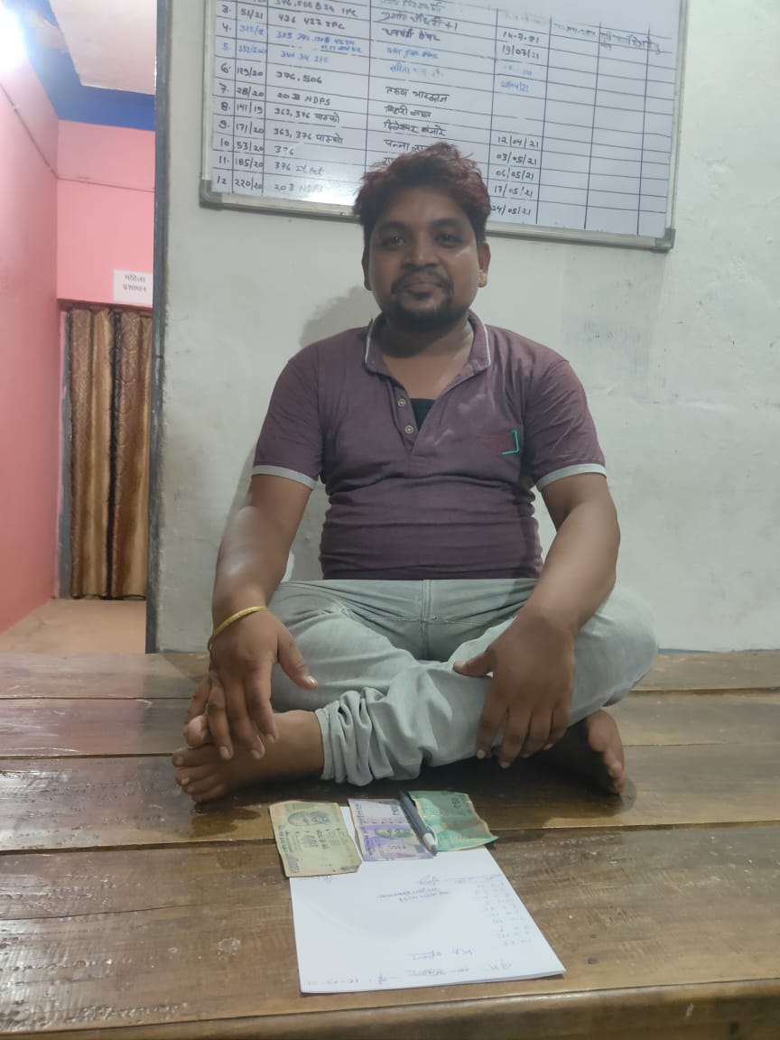 आरोपी के कब्जे से 02 लीटर हाथ भट्टी महुआ शराब कीमती 200/ रुपए जप्त