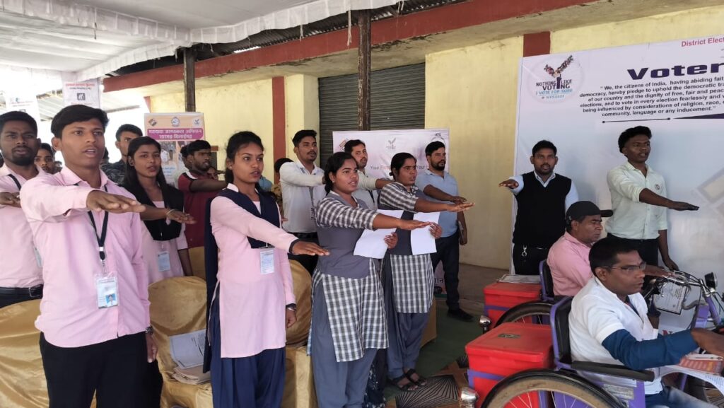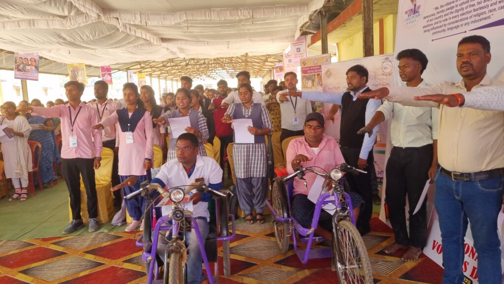 सभी ने यह शपथ ली कि लोकतंत्र में हम अपनी पूर्ण आस्था रखते हैं। हम अपने देश की लोकतांत्रिक परम्पराओं की मर्यादा को बनाए रखेंगे। स्वतंत्र, निष्पक्ष एवं शांतिपूर्ण निर्वाचन की गरिमा को अक्षुण्ण रखते हुए निर्भिक होकर बिना किसी भेद-भाव अथवा प्रलोभन में आये अपने मताधिकार का उपयोग करेंगे। इस अवसर पर बेहतर कार्य करने वाले कर्मचारियो को प्रशस्ति पत्र भेंट किया गया। कार्यक्रम का आयोजन और रूपरेखा, समन्वय उप संचालक समाज कल्याण विनय तिवारी के द्वारा किया गया। इस अवसर पर जिले के अधिकारीगण उपस्थित थे।