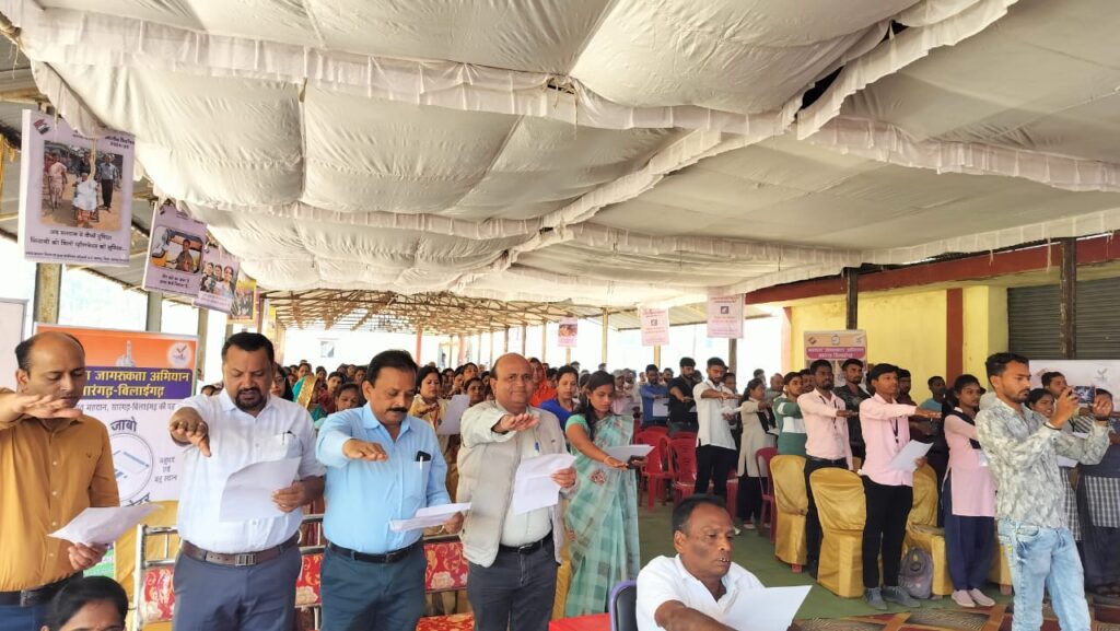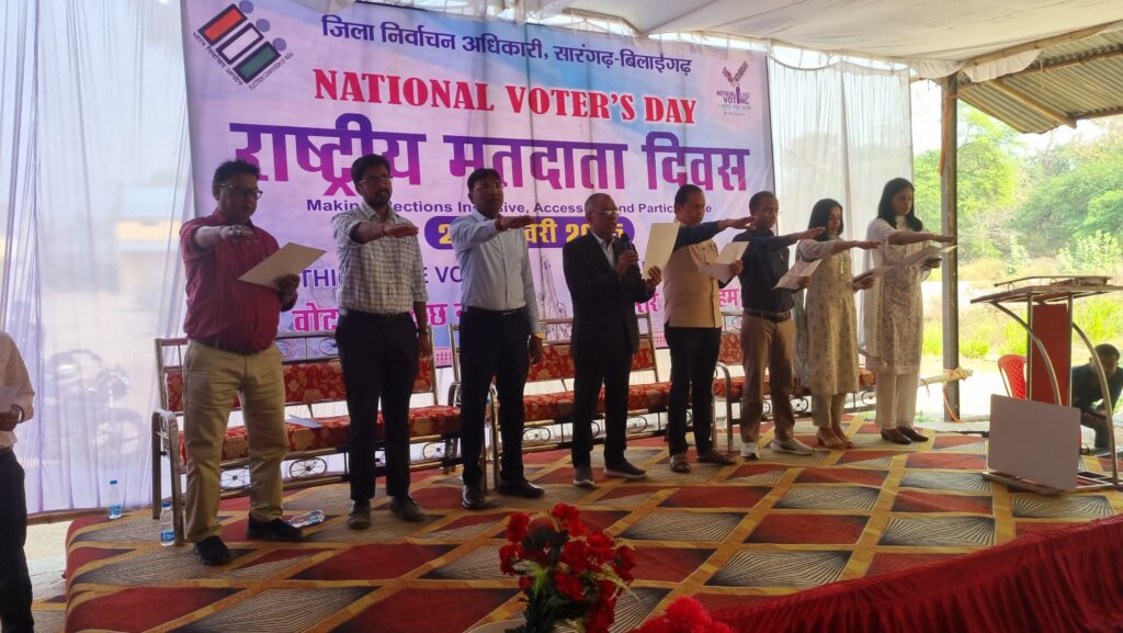 सारंगढ़ बिलाईगढ़, 25 जनवरी 2025/ राष्ट्रीय मतदाता दिवस के अवसर पर कलेक्टर एवं जिला निर्वाचन अधिकारी धर्मेश कुमार साहू एवं अतिथि रिटायर्ड रजिस्ट्रार जनरल उच्च न्यायालय आर के बेहार ने अधिकारियों- कर्मचारियों को एक मतदाता के रूप में सजगता एवं निष्पक्षता के साथ अपने मताधिकार का उपयोग करने की शपथ दिलाई।