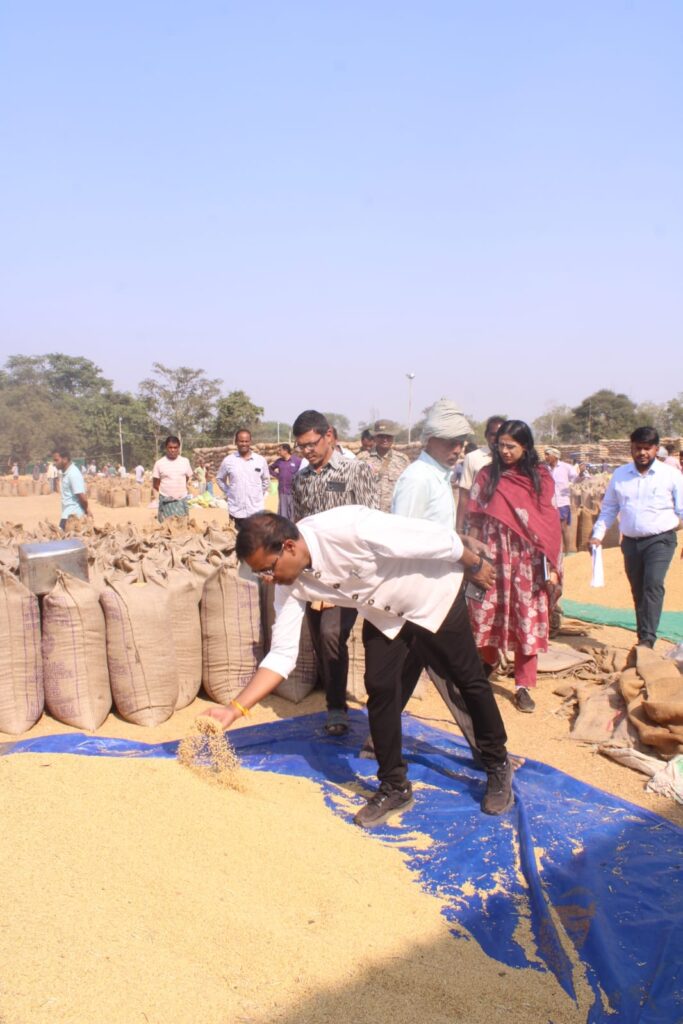 सारंगढ़ बिलाईगढ़, 26 दिसंबर 2025/कलेक्टर डॉ. संजय कन्नौजे ने बरमकेला का दौरा किया। उन्होंने कंठीपाली, तौसीर और कुम्हारी धान उपार्जन केन्द्रों में धान की नमी, किस्म का अवलोकन किया साथ ही किसानों से बातचीत कर धान खरीदी केन्द्र की सुविधाओं और कोई कमी के संबंध में जानकारी लिया। किसानों ने किसी प्रकार की असुविधा और समस्या की बात नहीं कही। कलेक्टर ने इस दौरान कम्प्यूटर के रिकार्ड भी चेक किए और समिति प्रबंधक तथा ऑपरेटर से धान खरीदी और भुगतान आदि के संबंध में बातचीत की।