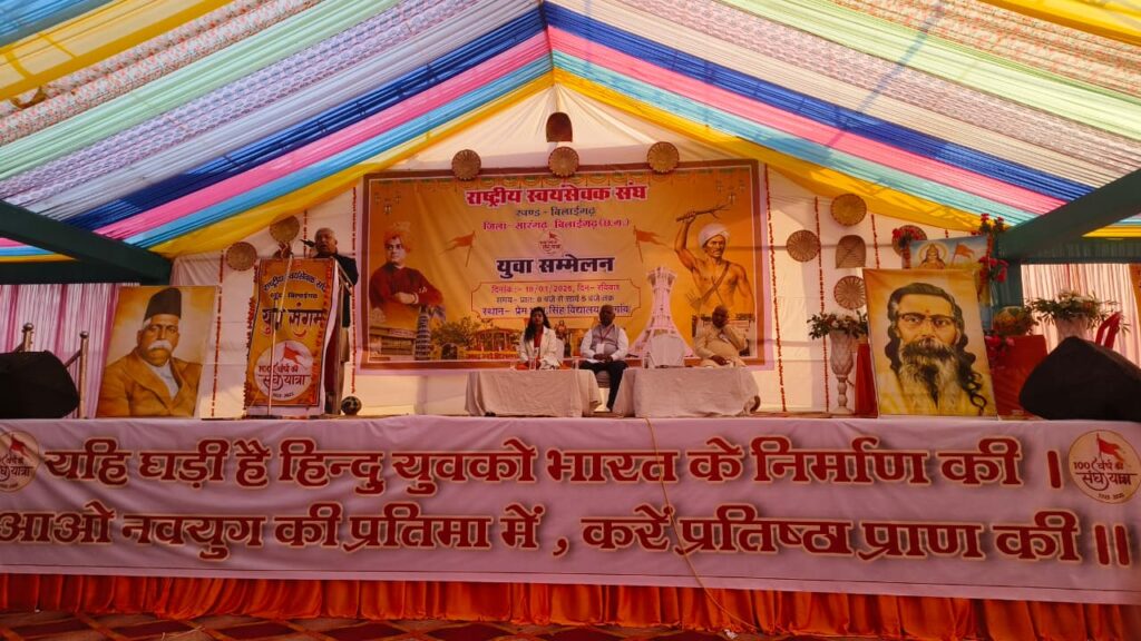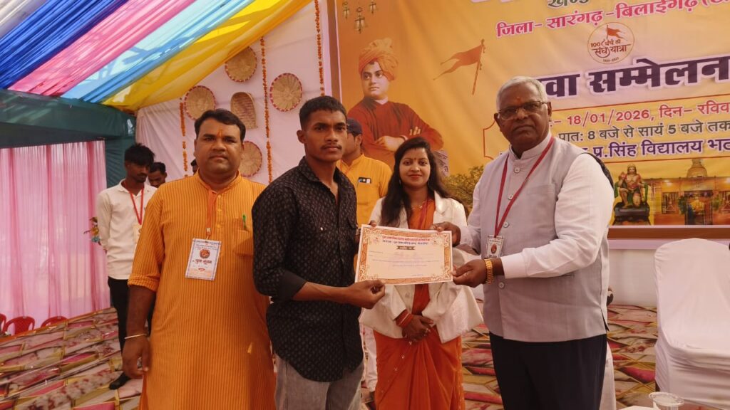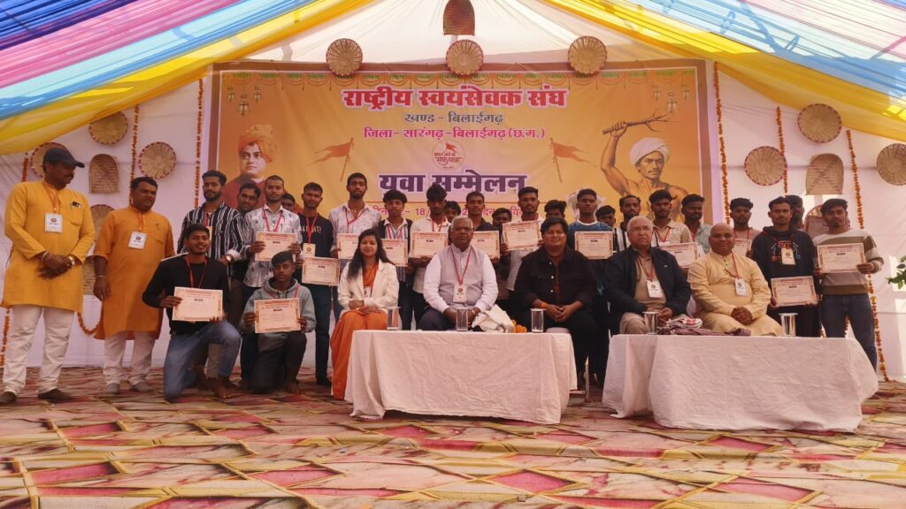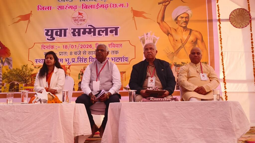 भटगांव: राष्ट्रीय स्वयंसेवक संघ (RSS) द्वारा बिलाईगढ़ खंड के ‘युवा संगम’ कार्यक्रम का भव्य आयोजन 18 जनवरी 2026 को श्री प्रे.भु.प्र. सिंह विद्यालय, भटगांव में संपन्न हुआ। इस कार्यक्रम में क्षेत्र के सैकड़ों युवाओं ने सहभागिता की, जहाँ उन्हें राष्ट्र निर्माण और सामाजिक दायित्वों के प्रति जागरूक किया गया।