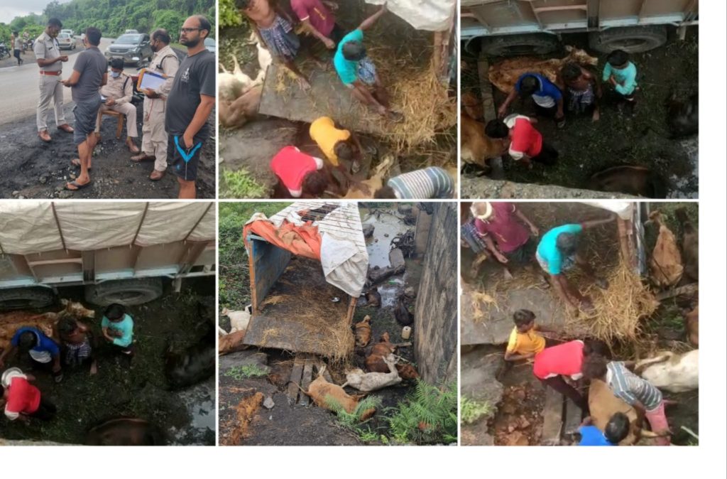 दर्दनाक हादसा- 19 गायों की मौत, 6 घायल…लाखा के पास मवेशियों से भरी ट्रक पुल के नीचे गिरी…ड्राइवर और तस्कर मौके से फरार…