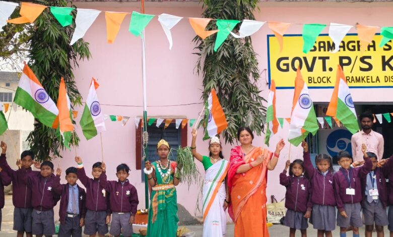 सारंगढ़ बिलाईगढ़, 27 जनवरी 2026/ गणतंत्र दिवस पर विकासखंड बरमकेला के प्राथमिक शाला खिचरी की शिक्षिका सुनीता यादव के नेतृत्व में पूरे गांव में उत्सव के रूप में मनाया। गांव में अनोखी पहल करते हुए हर घर में तिरंगा फहराकर, घर घर रंगोली, अल्पना, धान का चौक, चावल आटा का झुटी बनाकर रैली का स्वागत किया गया। माताओं और युवाओं में देशप्रेम और तिरंगे के प्रति श्रद्धा और सम्मान प्रदर्शित हो रहा था। घरों के सामने वंदे मातरम के 150 वर्ष पूरे होने पर, वंदे मातरम गायन जगह जगह-जगह आयोजित किया गया।