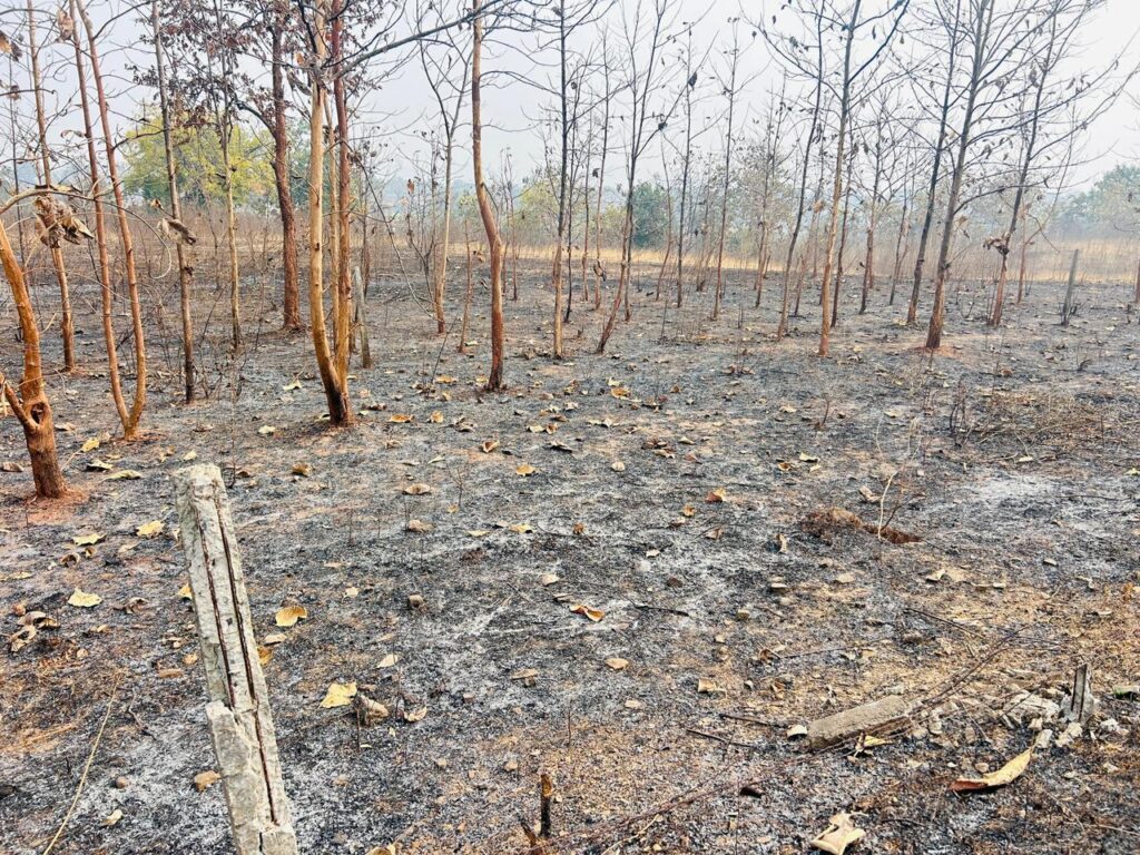 बिलाईगढ़- छत्तीसगढ़ के सारंगढ़ बिलाईगढ़ जिले के बिलाईगढ़ वन परिक्षेत्र अधिकारी कार्यालय के 100 मीटर दूरी पर स्थित सागौन प्लांट में आग लगने के कारण कई सारे हरे पौधे सागौन के पेड़ और अन्य वनस्पतियां जल गई है और आग में झुलस गई है।