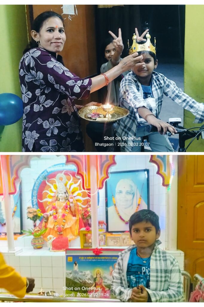 भटगांव : प्रज्ञा इंस्टिट्यूट के डायरेक्टर के. पी. पटेल ने अपने सुपुत्र मयंक (प्रखर) पटेल के 8 वें जन्मदिवस को बड़े ही धूमधाम से मनाया. प्रज्ञा इंस्टिट्यूट, करियर पॉइंट नेशनल स्कूल, गायत्री मंदिर, दुर्गा मंदिर एवं अपने घर परिवार मे जन्मदिवस को अत्यंत हर्षोल्लास के साथ मनाया गया.