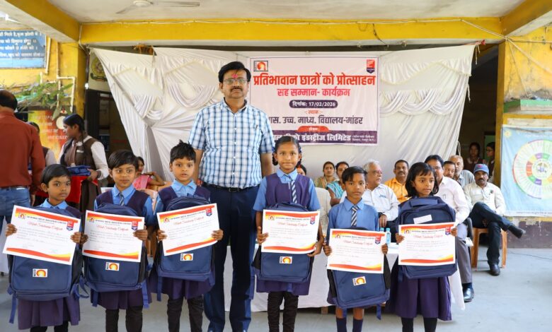 तिल्दा नेवरा : जायसवाल निको इंडस्ट्रीज द्वारा निगमित सामाजिक उत्तरदायित्व के “शिक्षा एवं प्रशिक्षण का संवर्धन” स्तम्भ के अन्तर्गत 17 फरवरी, 2026 को शासकीय उच्चतर माध्यमिक विद्यालय, मांढर में संस्थान द्वारा 54 मेधावी विद्यार्थियों को पाठ्य-सामग्री प्रदान कर पुरस्कृत किया गया, जिन्होंने शैक्षणिक वर्ष 2024-25 में कक्षा 1 से लेकर कक्षा12 वीं तक की अपनी कक्षा में प्रथम, द्वितीय एवं तृतीय स्थान प्राप्त विद्यार्थी शामिल थे, जिसमें एक विशेष बालिका को भी पुरस्कृत किया गया।