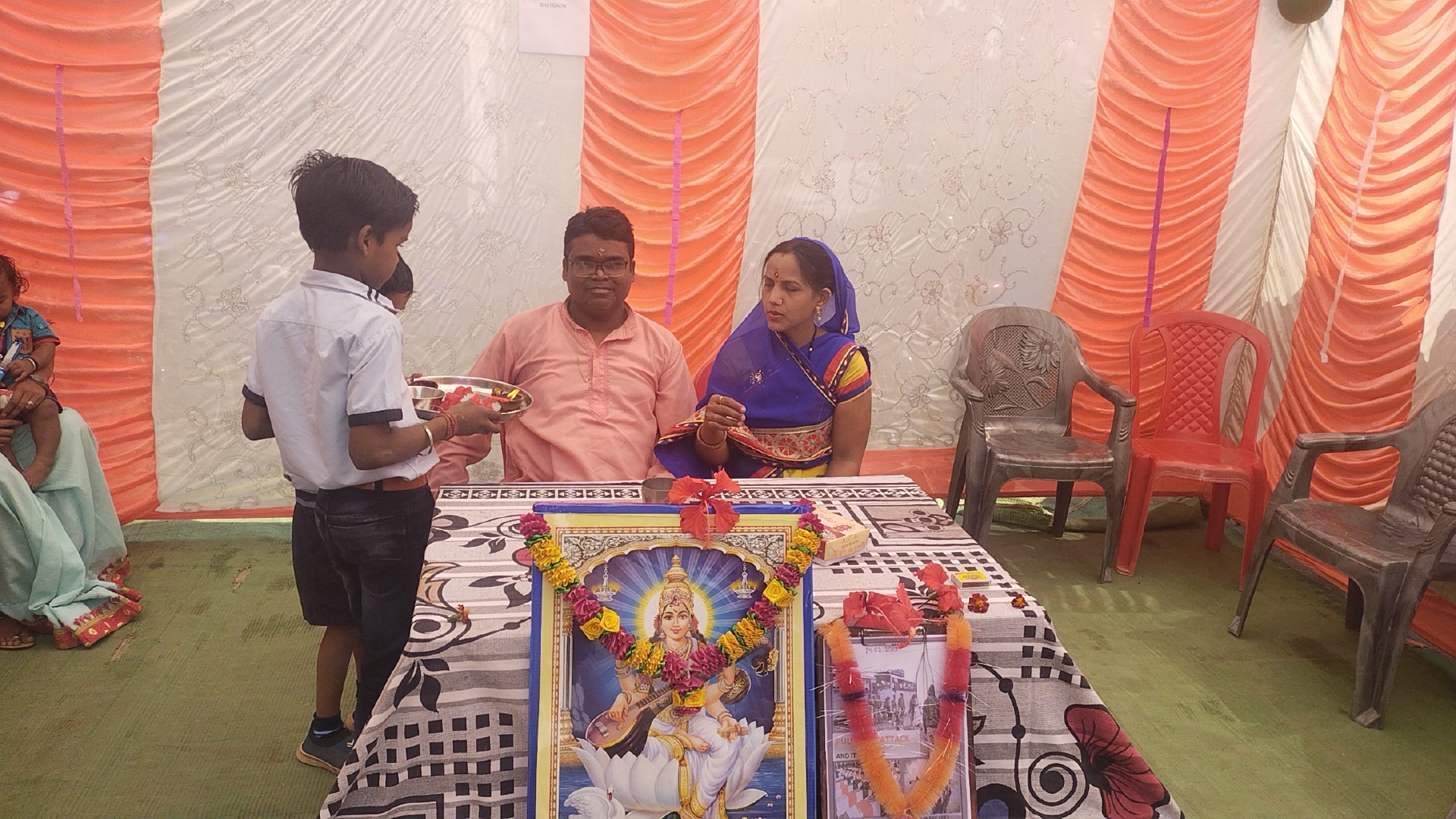 कार्यक्रम का संचालन संचालक प्रियंका चौहान व प्राचार्य नरेश चौहान ने किये और सभी स्टॉफ ने एक एक करके बच्चों से माता पिता का पूजन कराया.