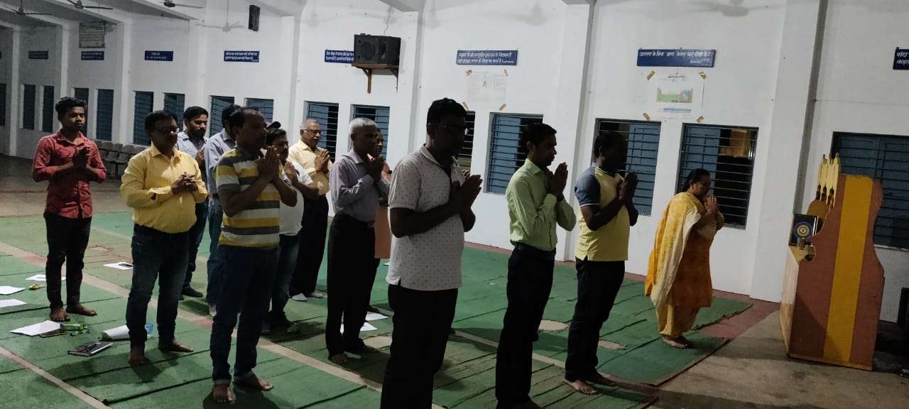 बैठक की शुरुआत में संयोजक शिवदयाल पटेल ने तीन ओमकार प्रार्थना और “ओम सहनाववतु” मंत्र से कार्यक्रम की शुरुवात की। तत्पश्चात सभी कार्यकर्ताओं का परिचय प्राप्त किया गया। सहसंयोजक नंदकुमार चंद्रा के शान्तिमन्त्र ” ओम सर्वे भवन्तु सुखिनः” और रचना दीदी द्वारा कराया गया केंद्र प्रार्थना ” जय जय परमात्मन संस्मरामो वयं त्वाम” को प्रतिभागियों द्वारा दुहराने के साथ ही कार्यक्रम सम्पन्न हुआ।